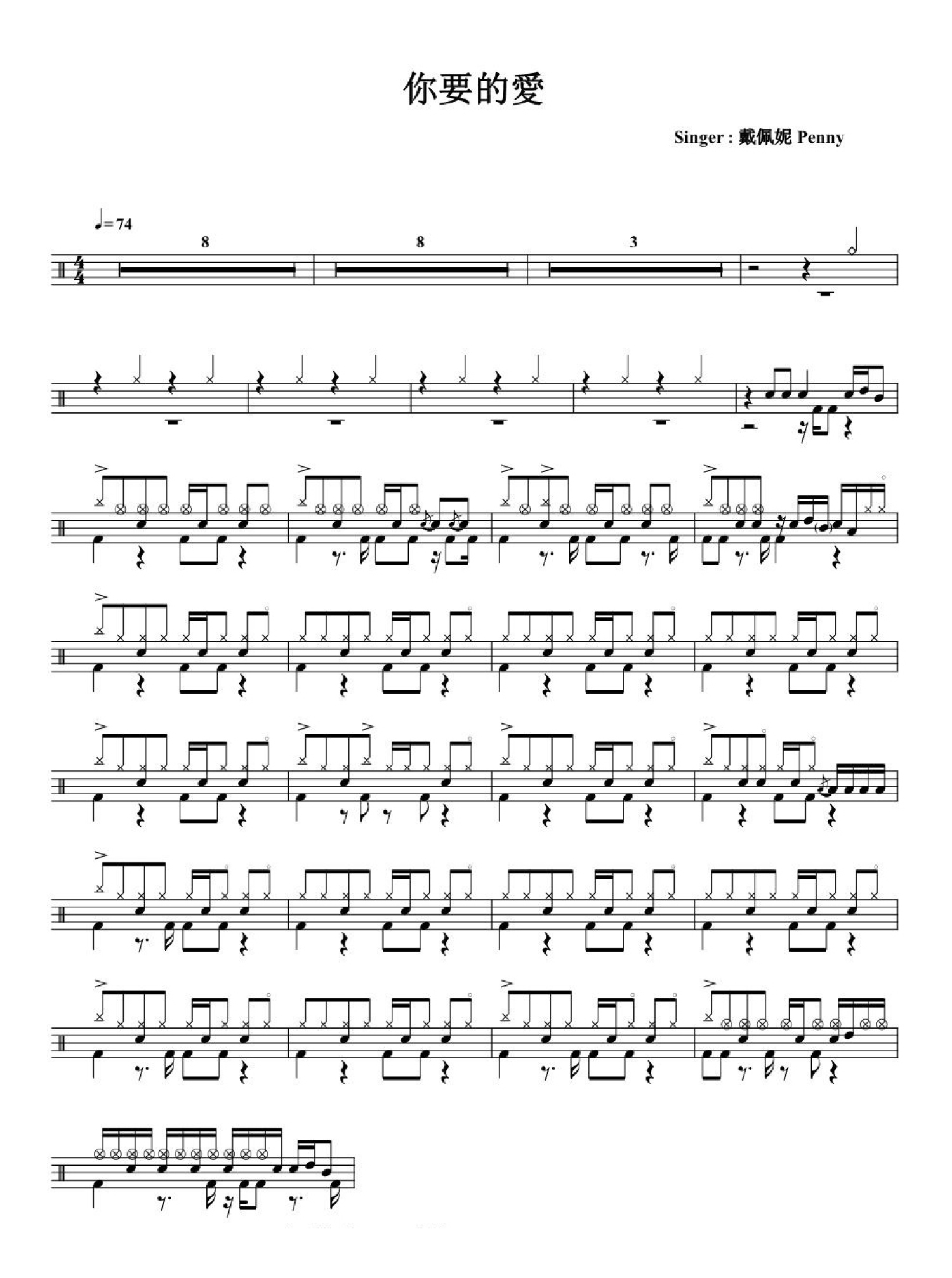 曲谱介绍: 你要的爱(架子鼓谱)-戴佩妮Penny