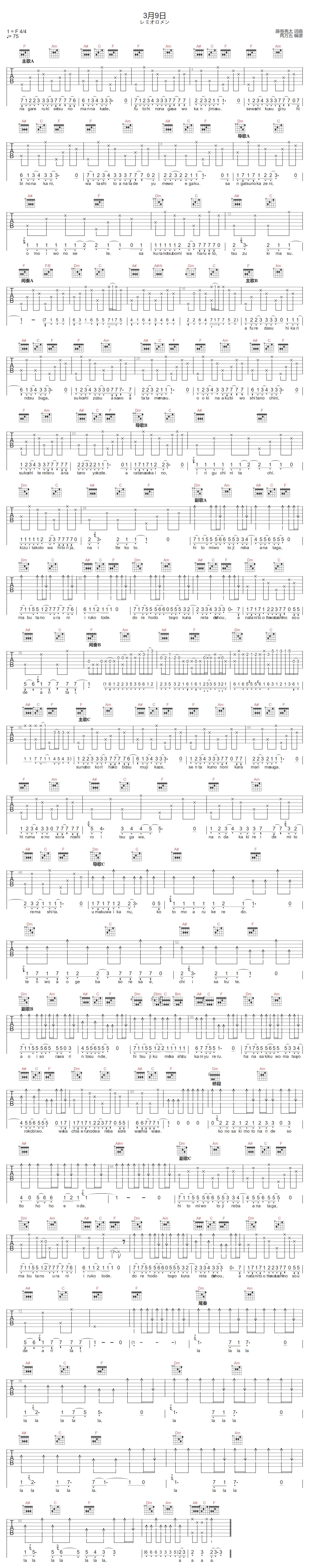 3月9日吉他谱 - レミオロメン - F调吉他弹唱谱