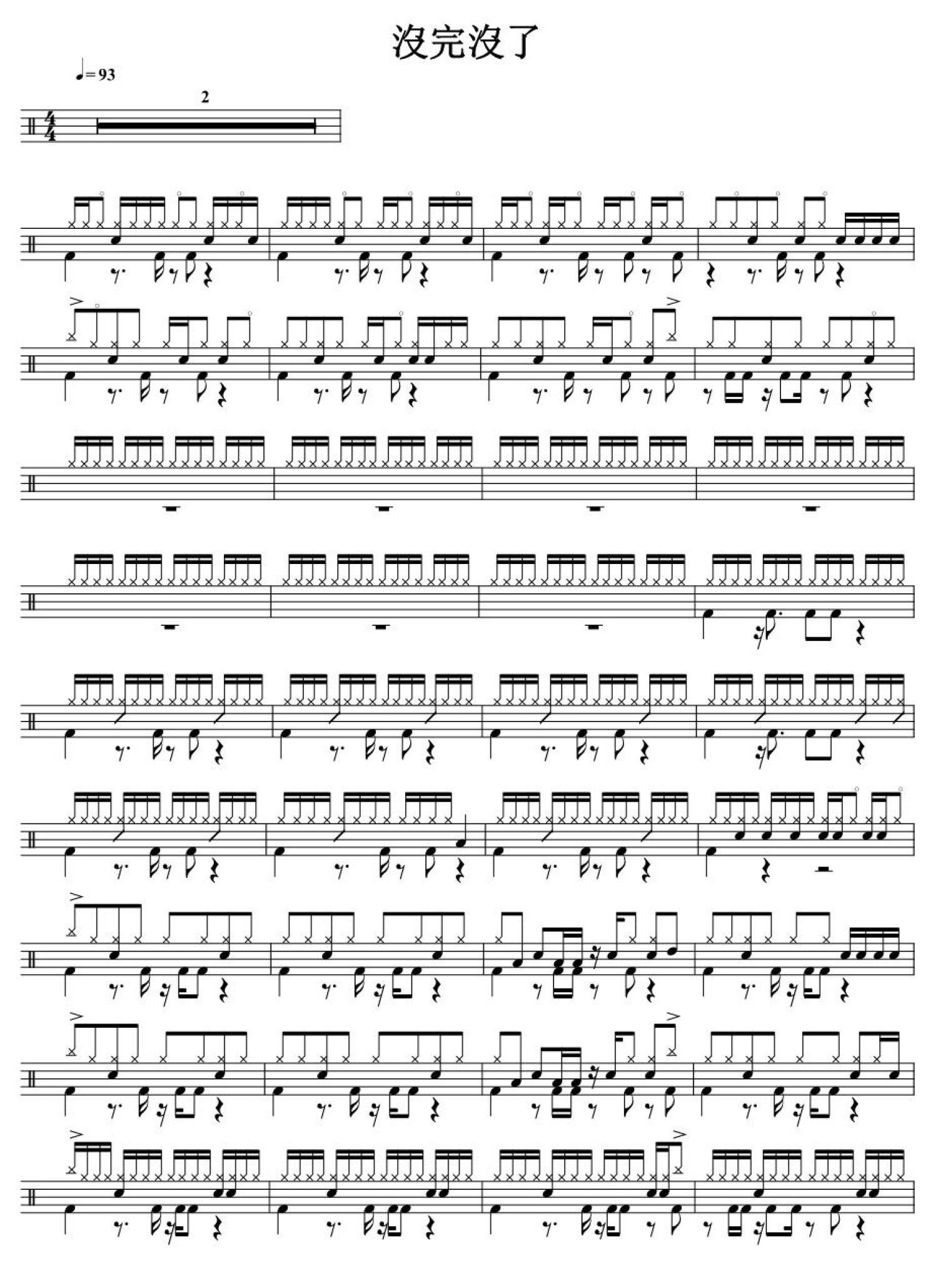 曲谱介绍: 没完没了(架子鼓谱)