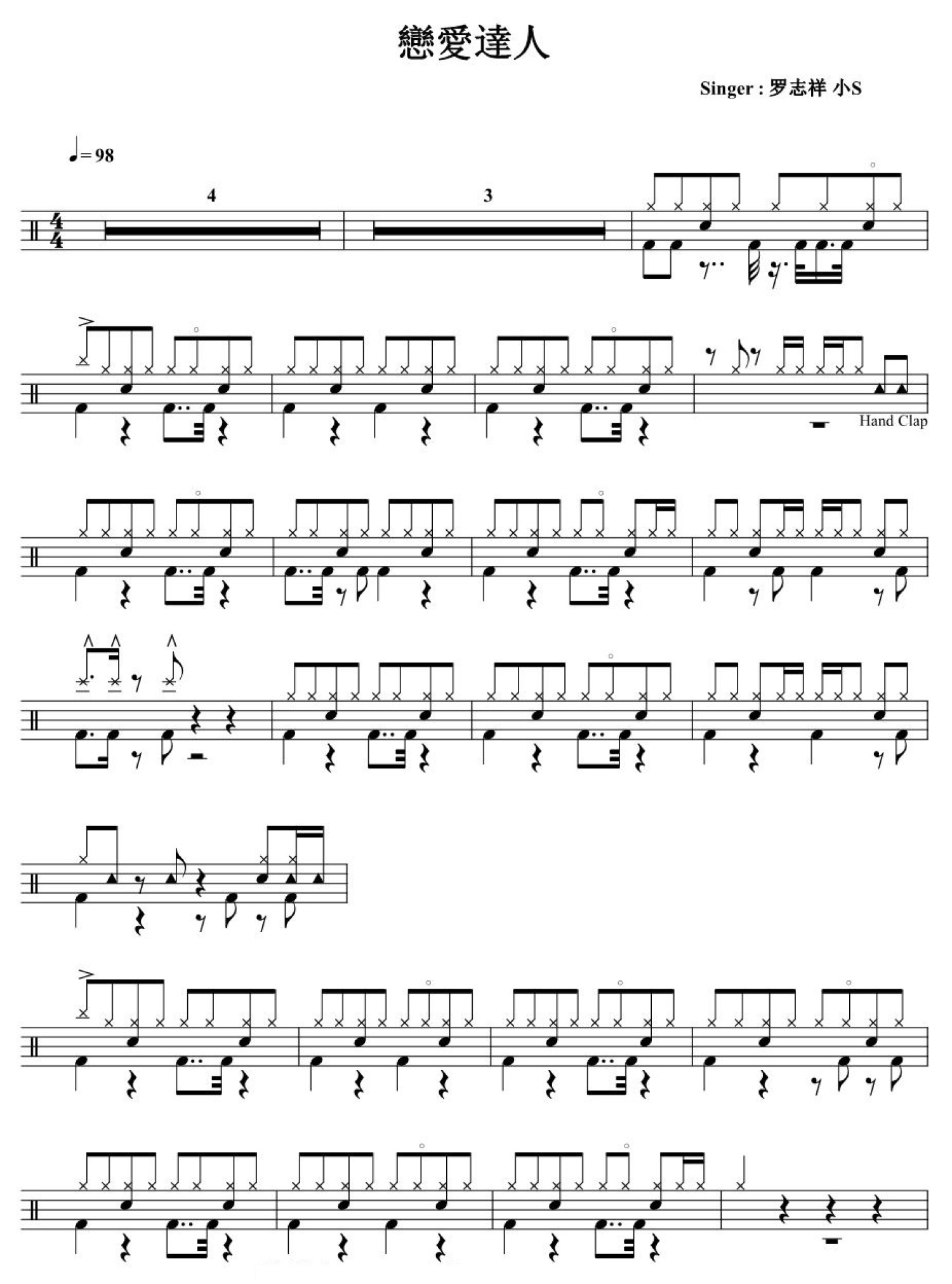 曲谱介绍: 恋爱达人(架子鼓谱)-罗志祥 小S