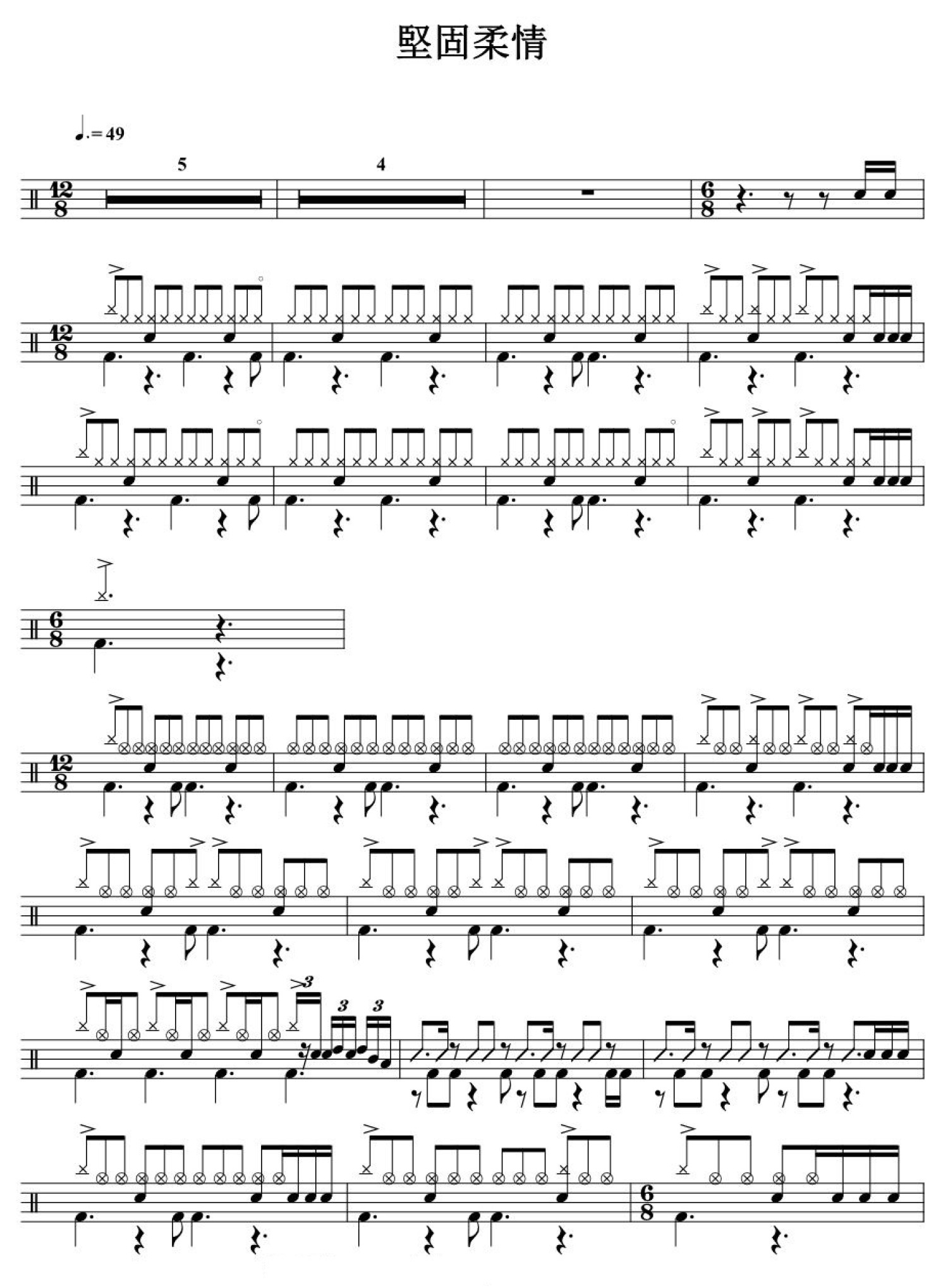 曲谱介绍: 坚固柔情(架子鼓谱)