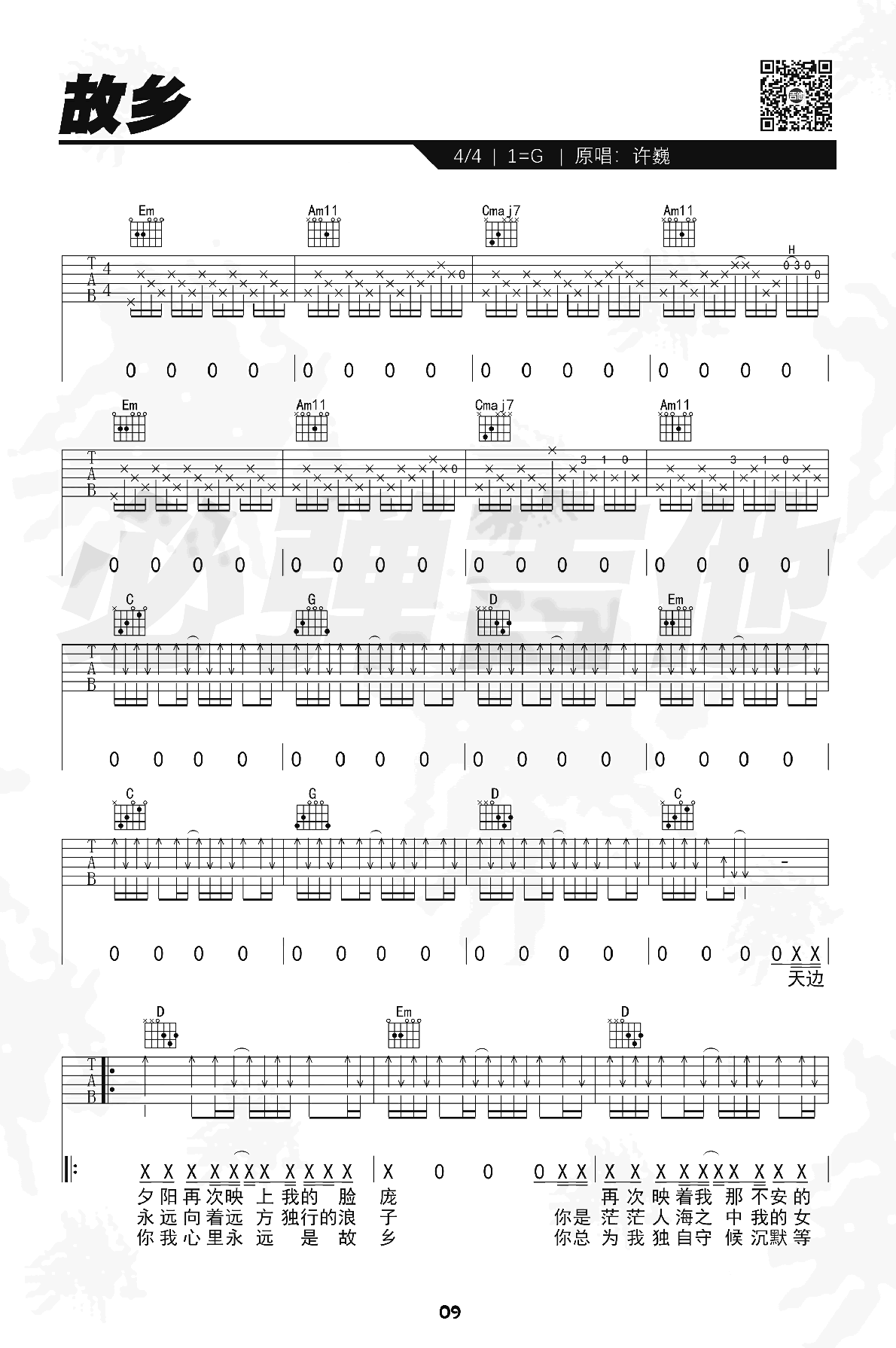 当前位置:琴谱网>吉他弹唱>故乡