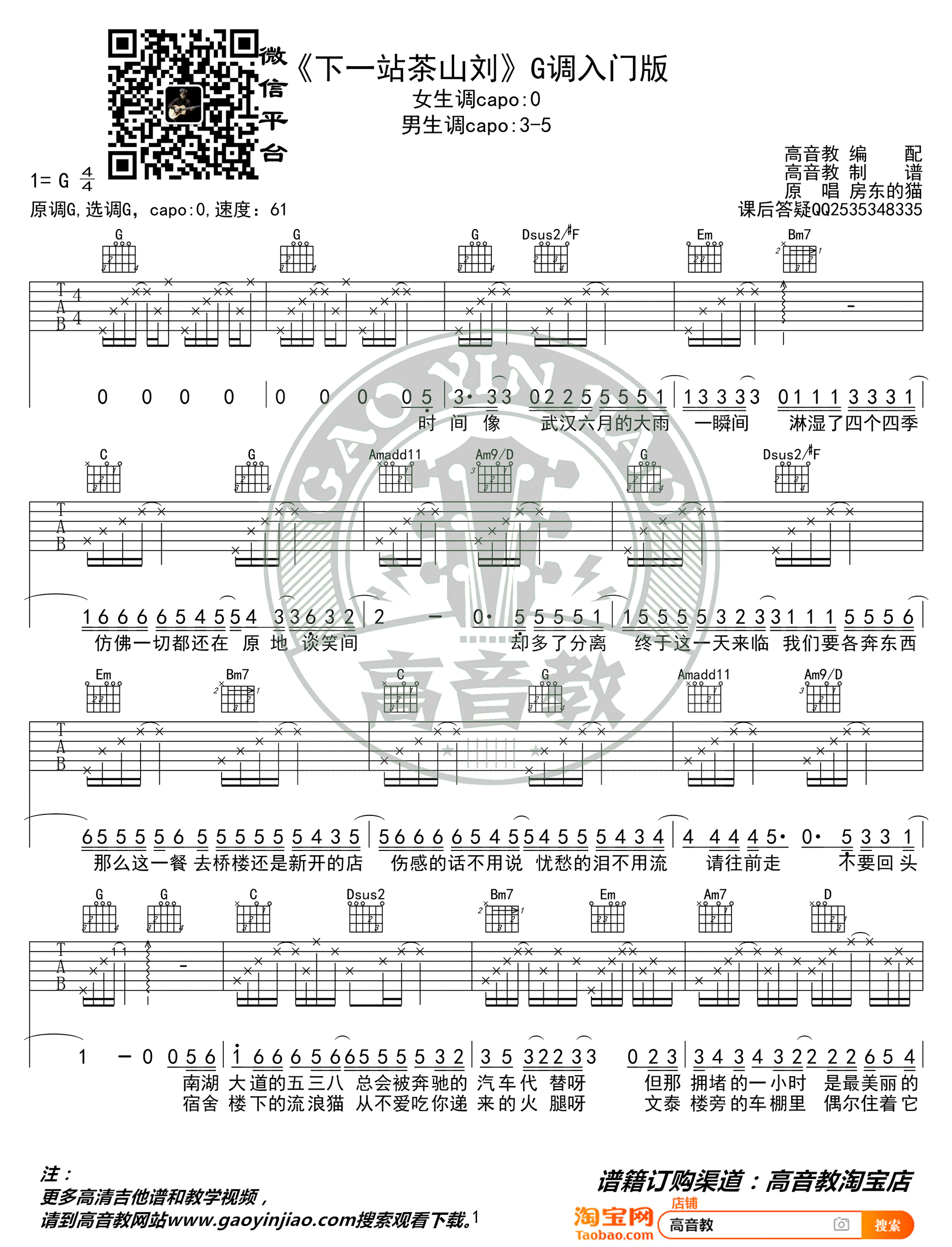 下一站茶山刘吉他谱 - 房东的猫 - G调吉他弹唱谱