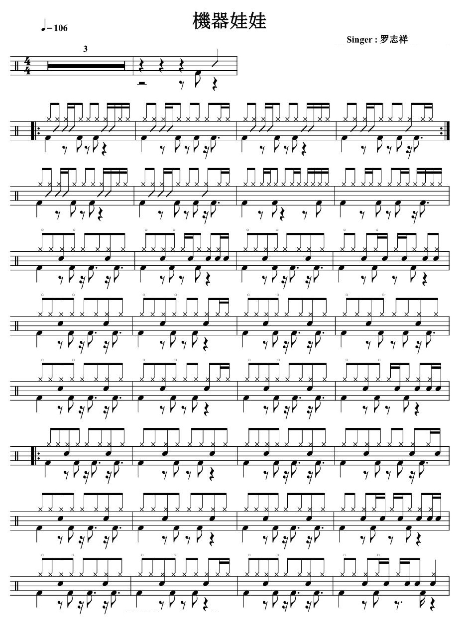 曲谱介绍: 机器娃娃(架子鼓谱)-罗志祥