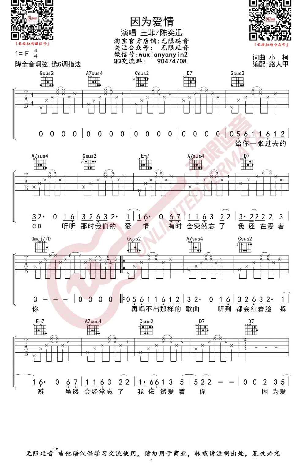 当前位置:琴谱网>吉他弹唱>因为爱情