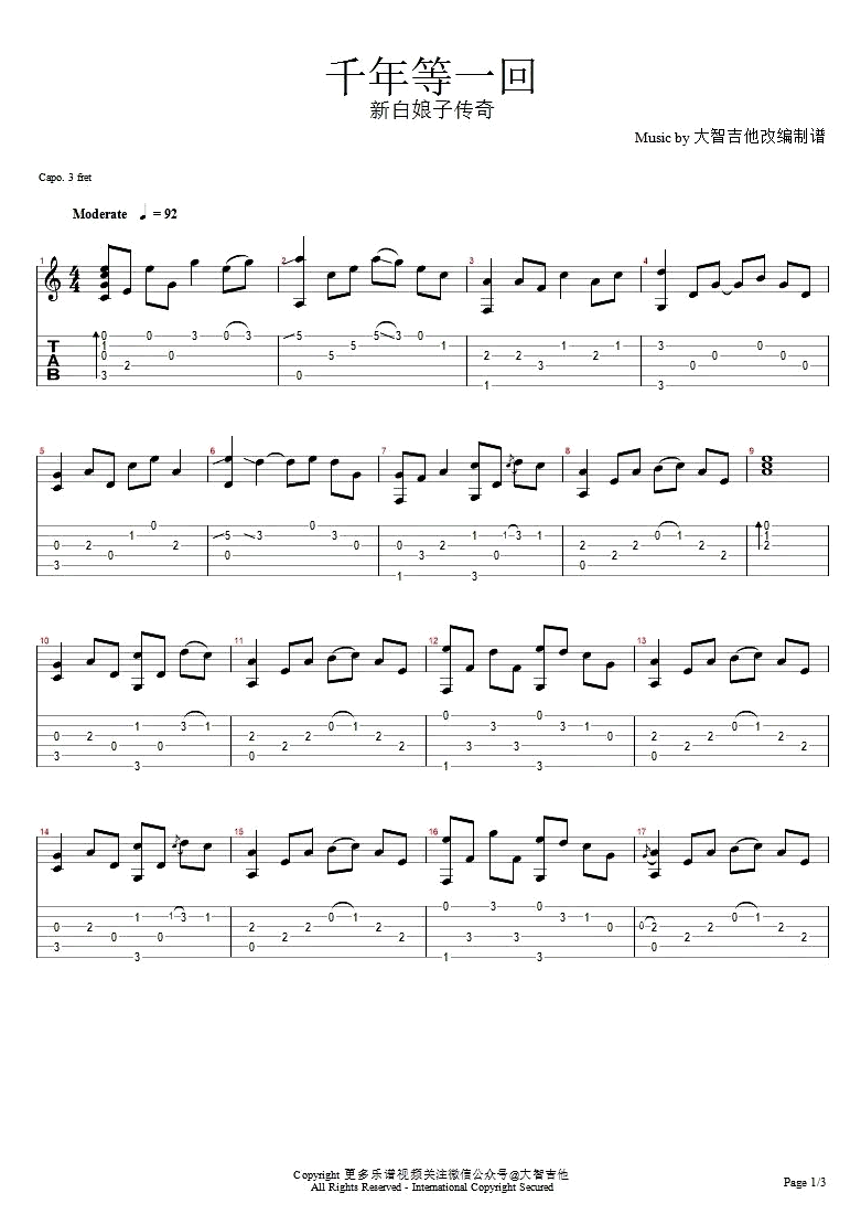 千年等一回谱_超原版_新白娘子传奇_吉他谱 - 新白娘子传奇 - 吉他独奏谱 - 原版