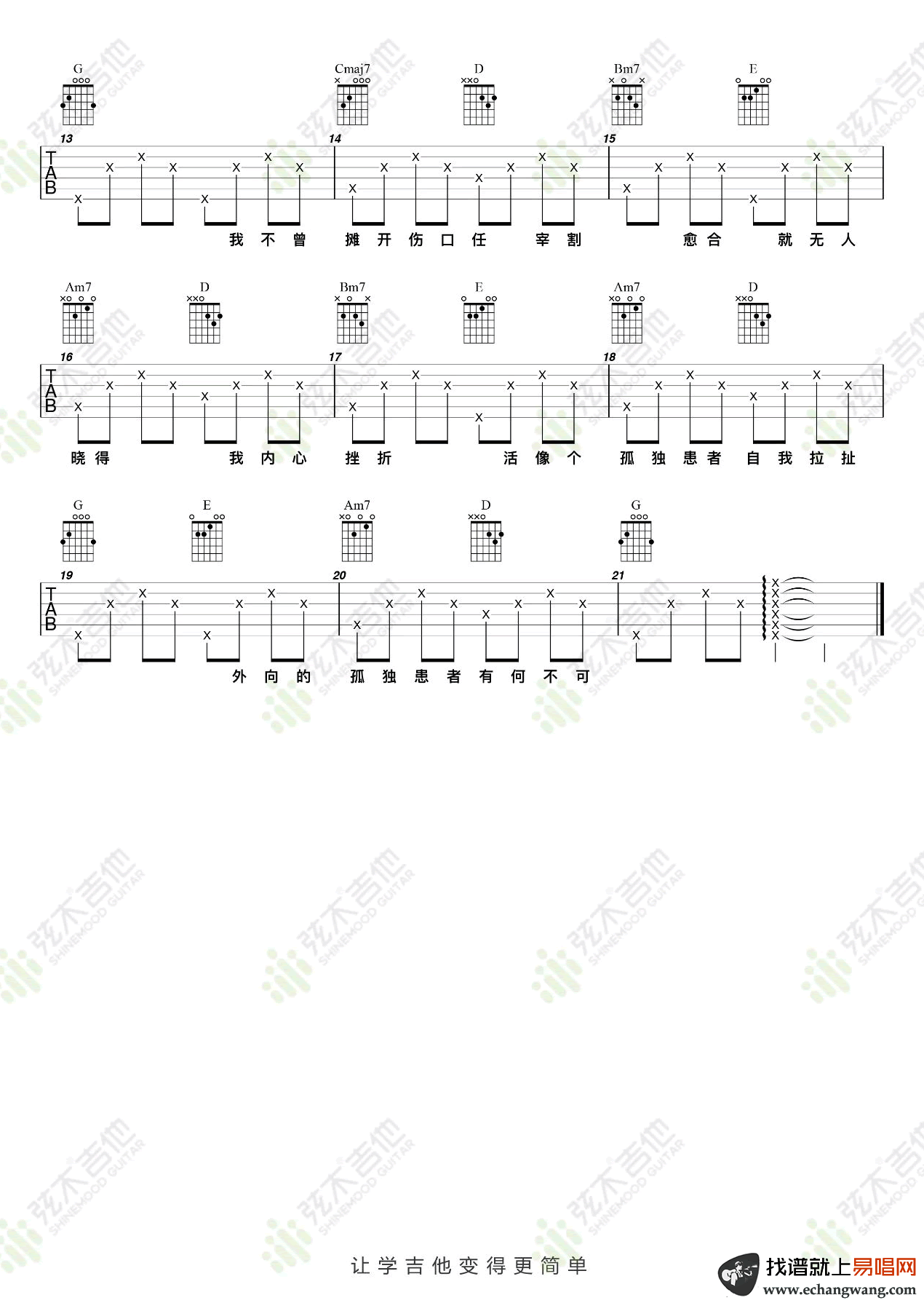 当前位置:琴谱网>吉他弹唱>孤独患者