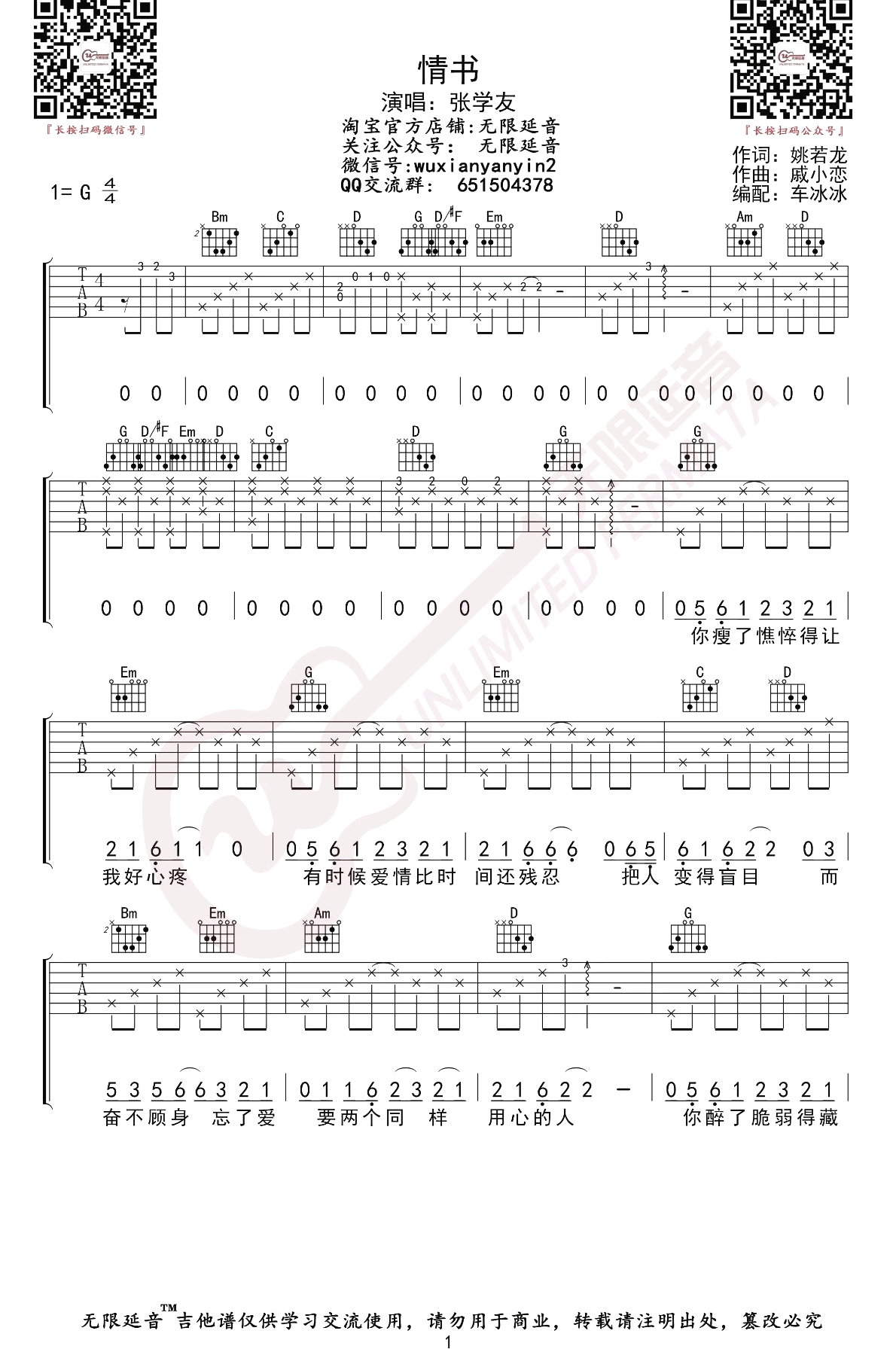 情书吉他谱 - 张学友 - G调吉他弹唱谱