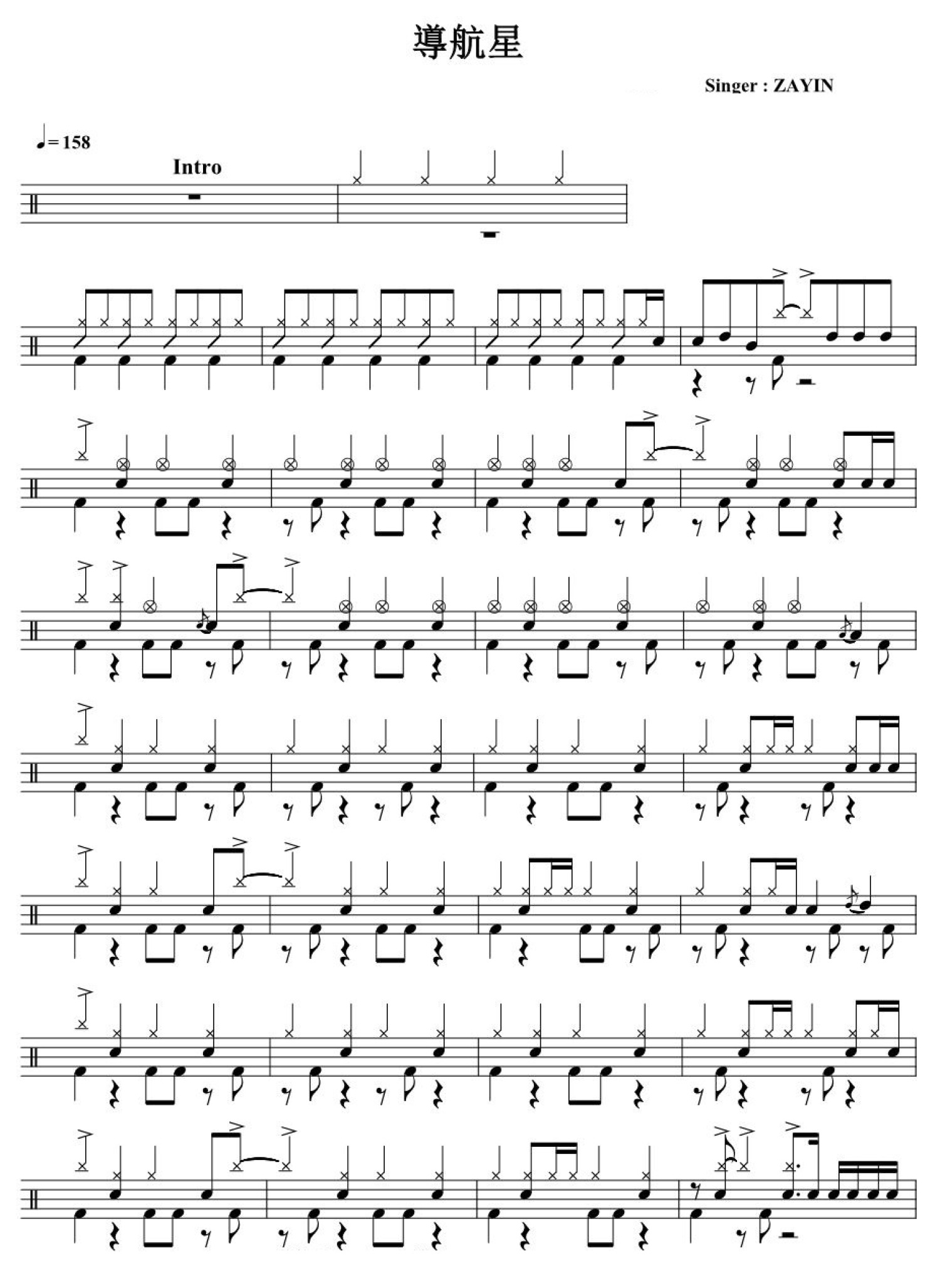 曲谱介绍: 导航星(架子鼓谱)-ZAYIN