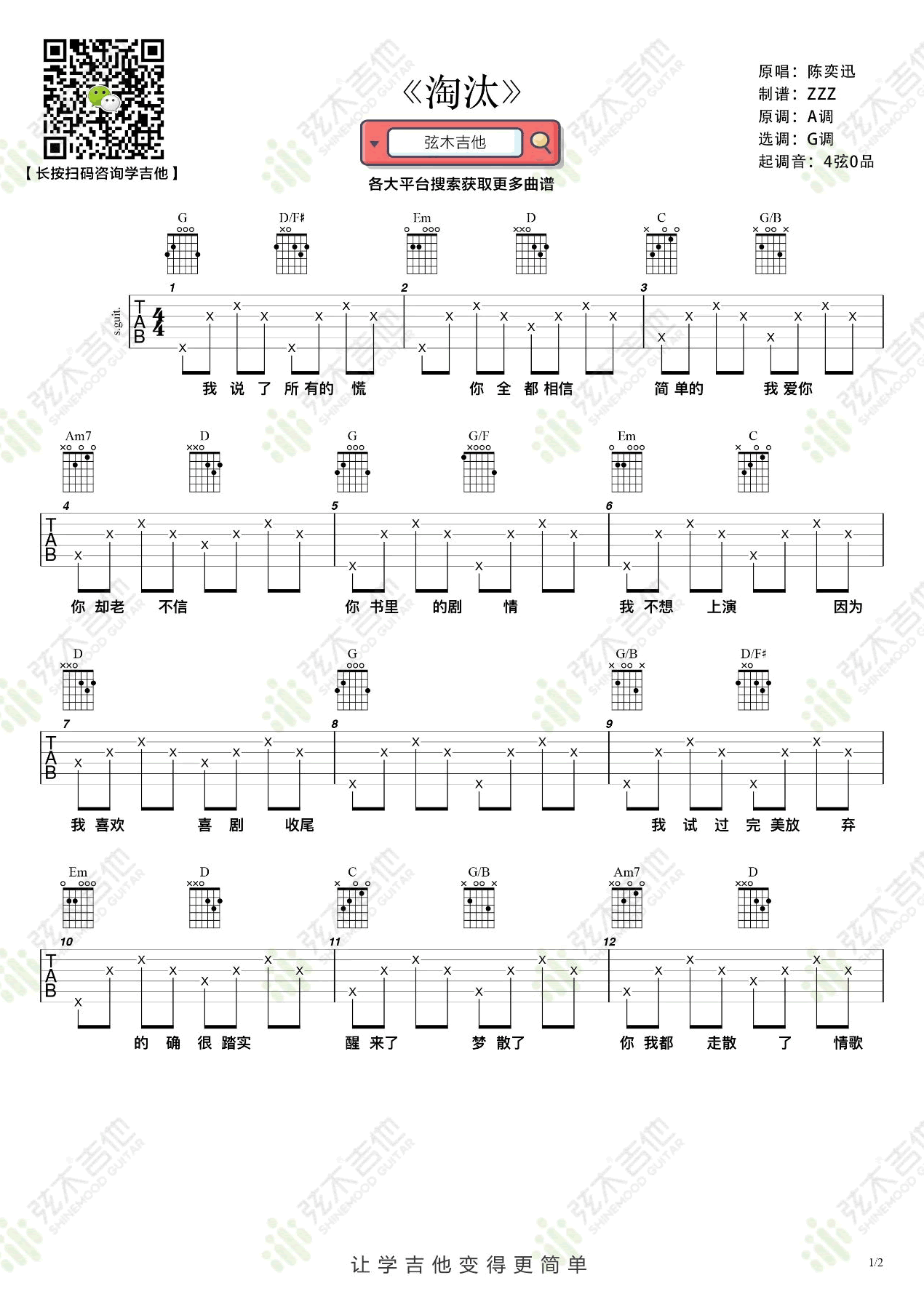 当前位置:琴谱网>吉他弹唱>淘汰