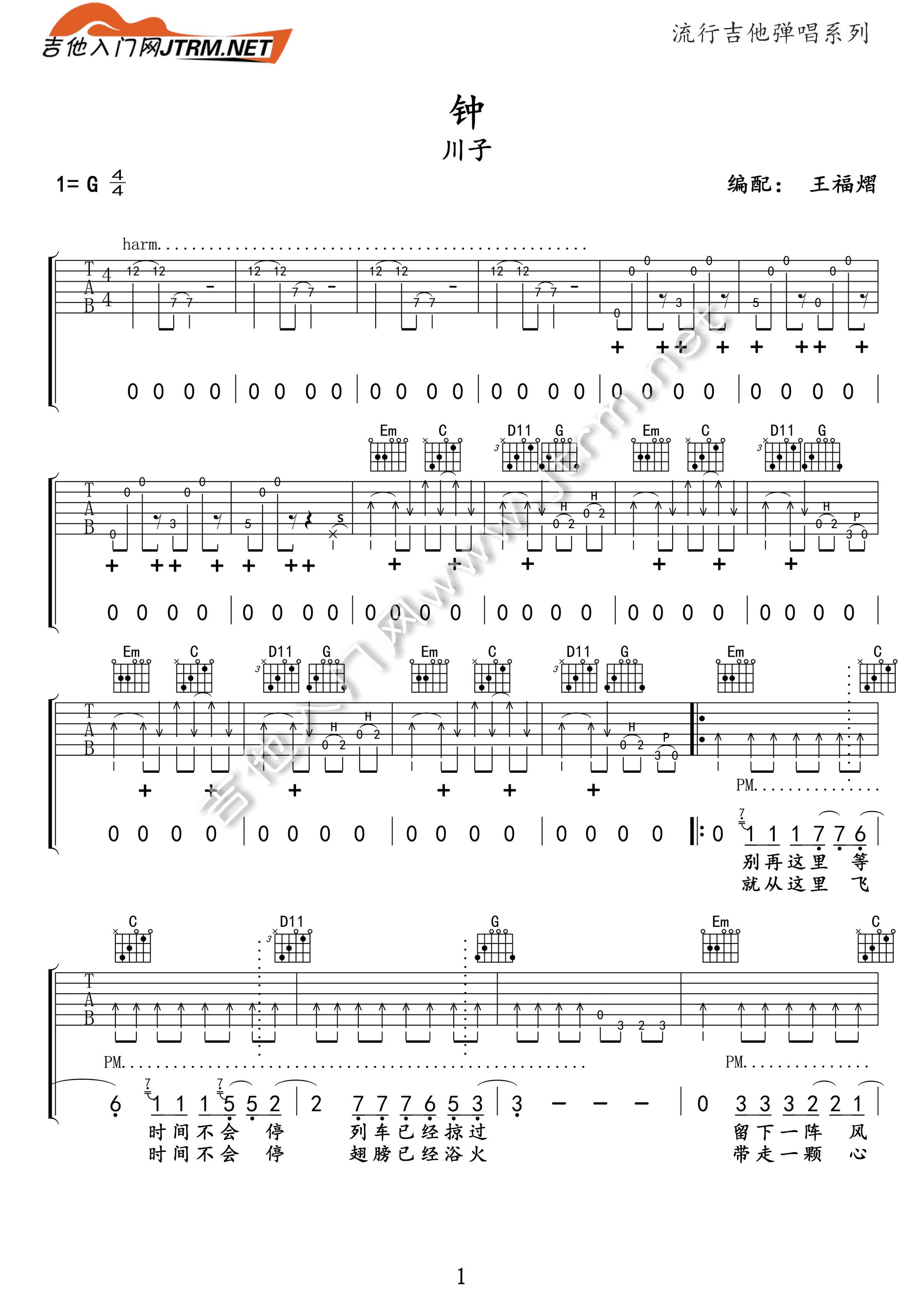 钟吉他谱 - 川子 - G调吉他弹唱谱