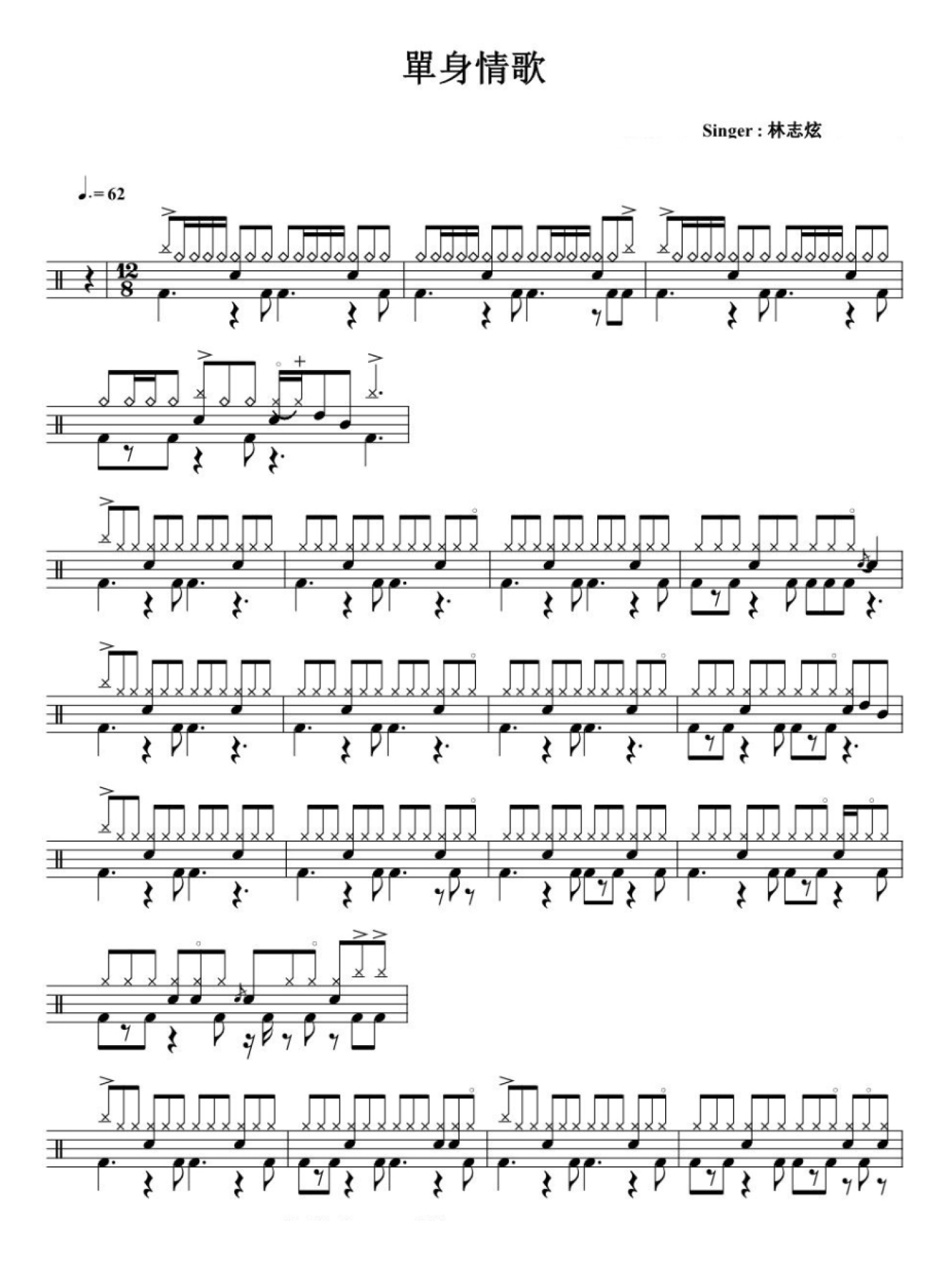 曲谱介绍: 单身情歌(架子鼓谱)-林志炫