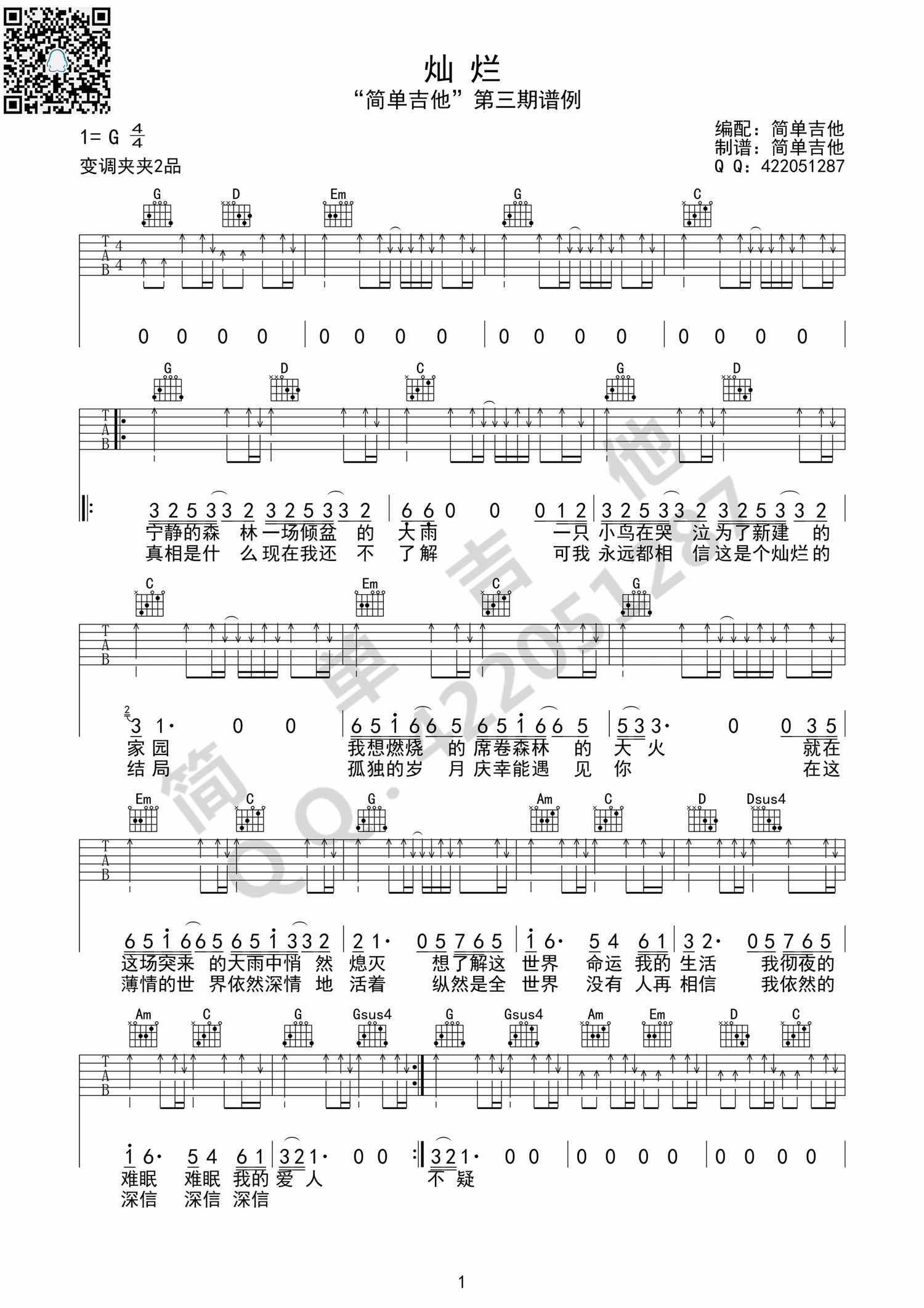 灿烂吉他谱 - 许巍 - G调吉他弹唱谱