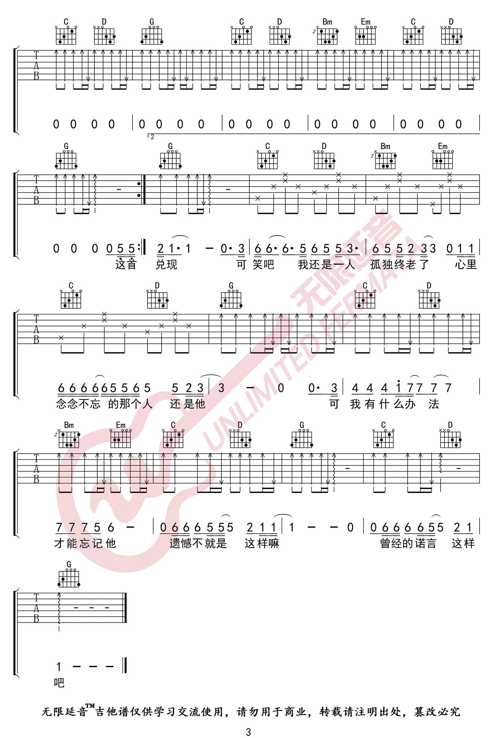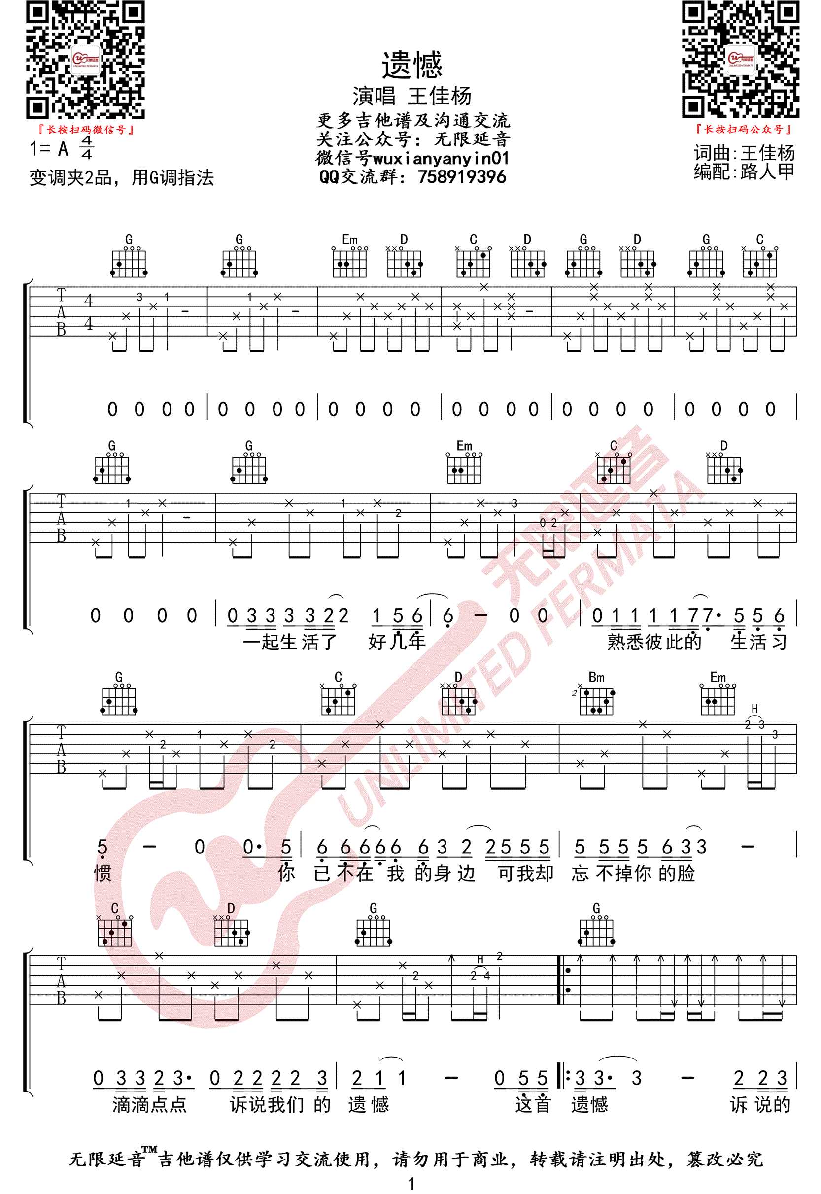 遗憾吉他谱 - 是你大哥阿 - G调吉他弹唱谱
