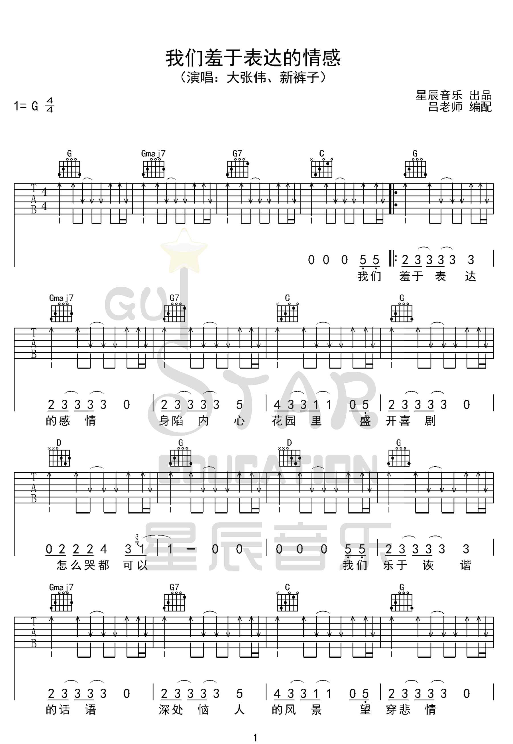 我们羞于表达的感情吉他谱 - 大张伟/新裤子乐队 - G调吉他弹唱谱