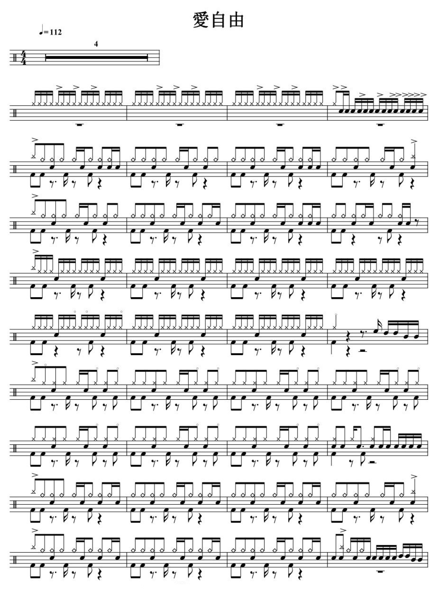 曲谱介绍: 爱自由(架子鼓谱)