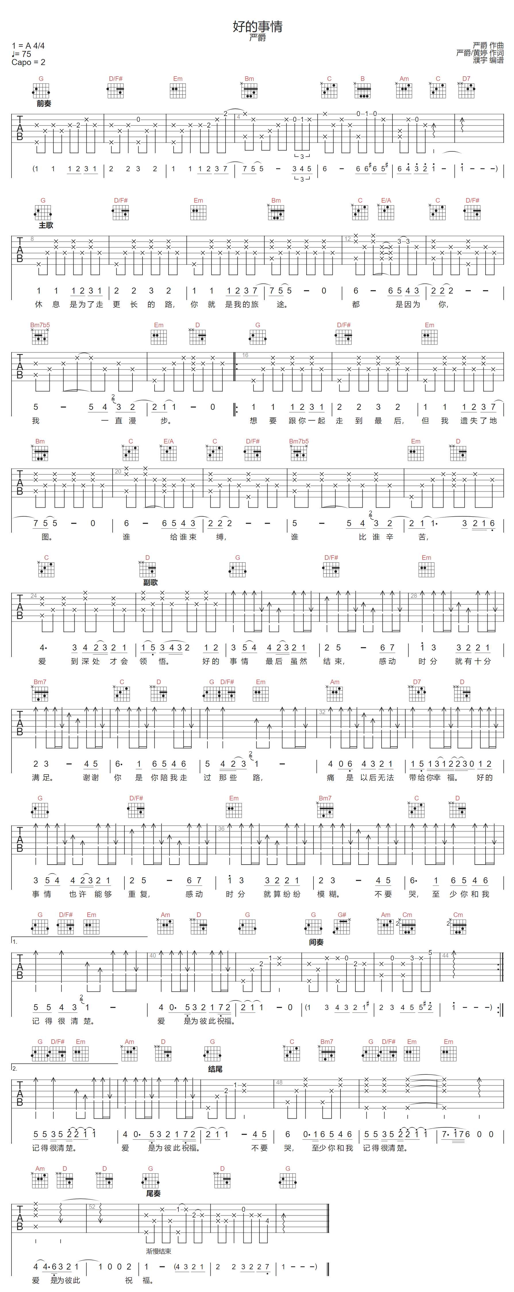 好的事情吉他谱 - 严爵 - G调吉他弹唱谱 - 原版