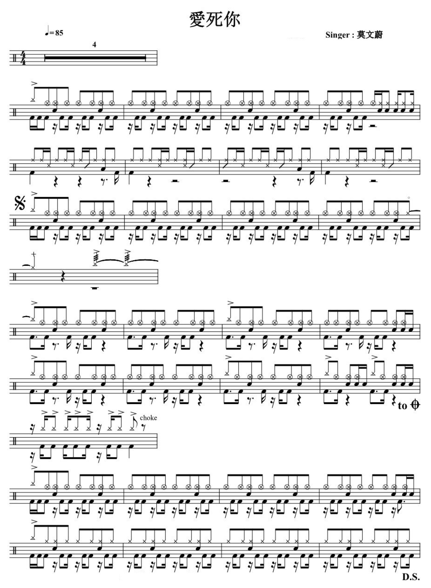 曲谱介绍: 爱死你(架子鼓谱)-莫文蔚