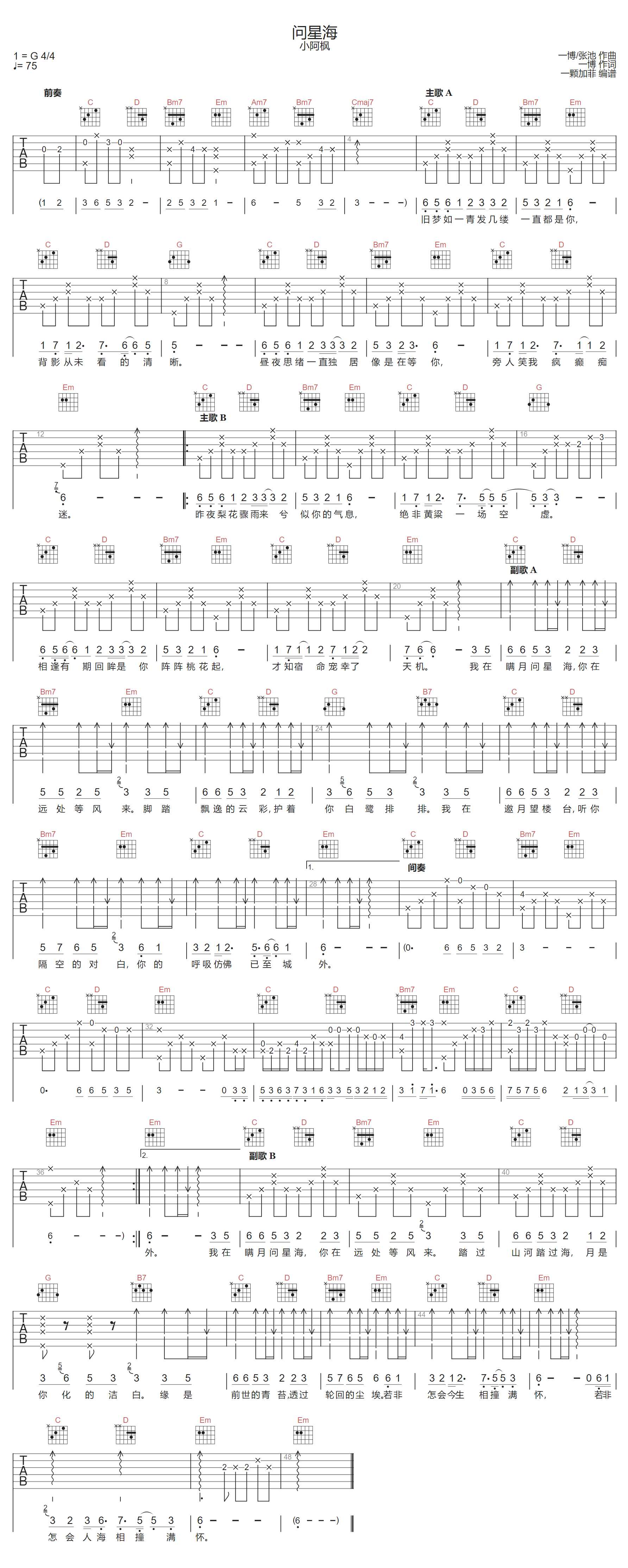 问星海吉他谱 - 小阿枫 - G调吉他弹唱谱 - 原版