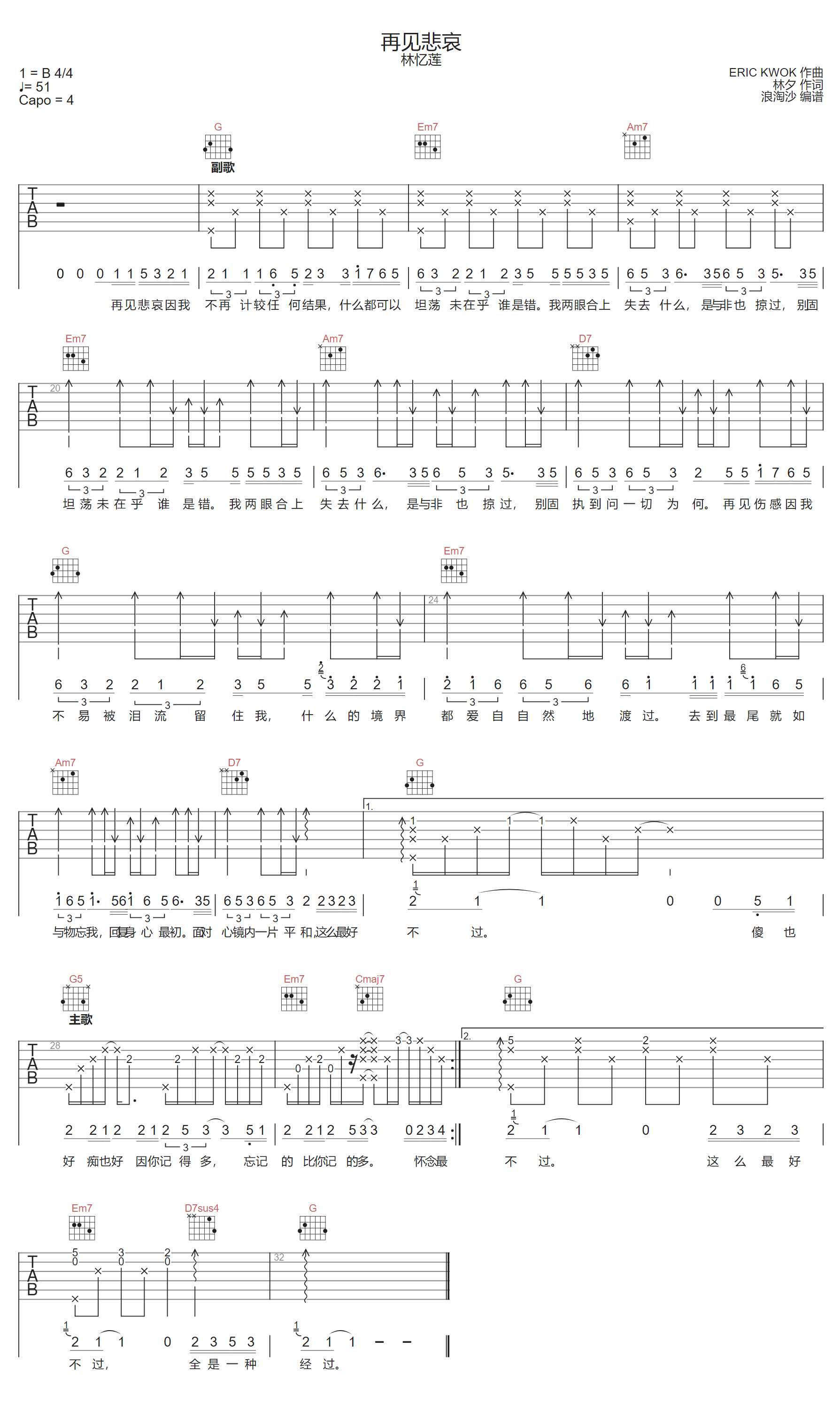 当前位置:琴谱网>吉他弹唱>再见悲哀