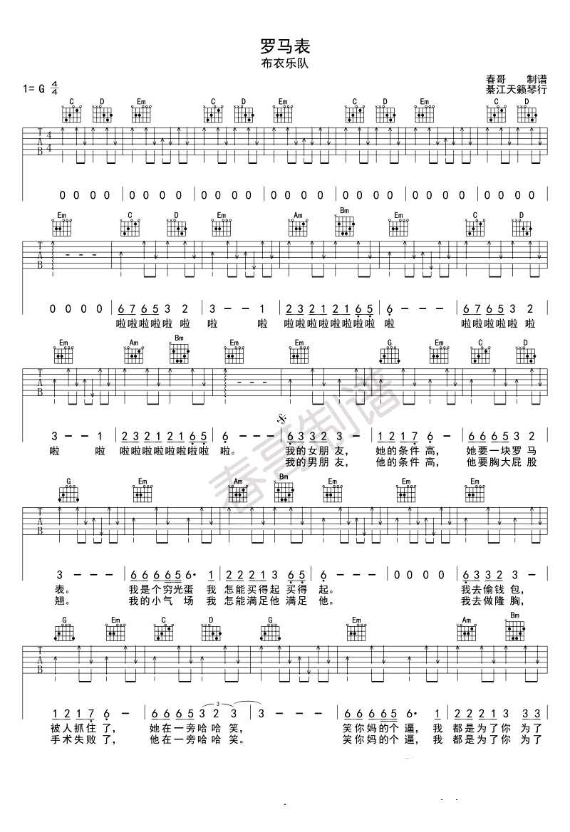 罗马表吉他谱 - 布衣乐队 - G调吉他弹唱谱