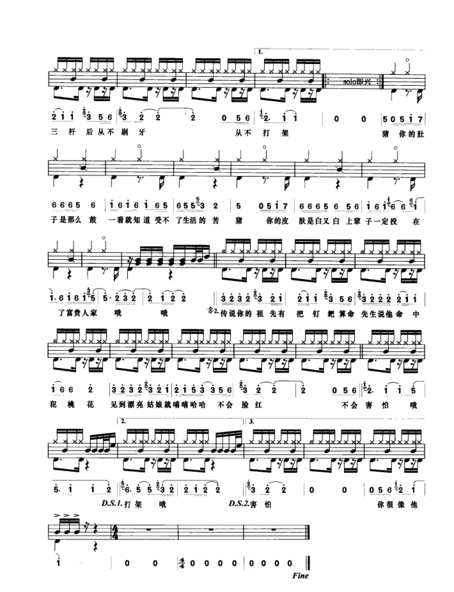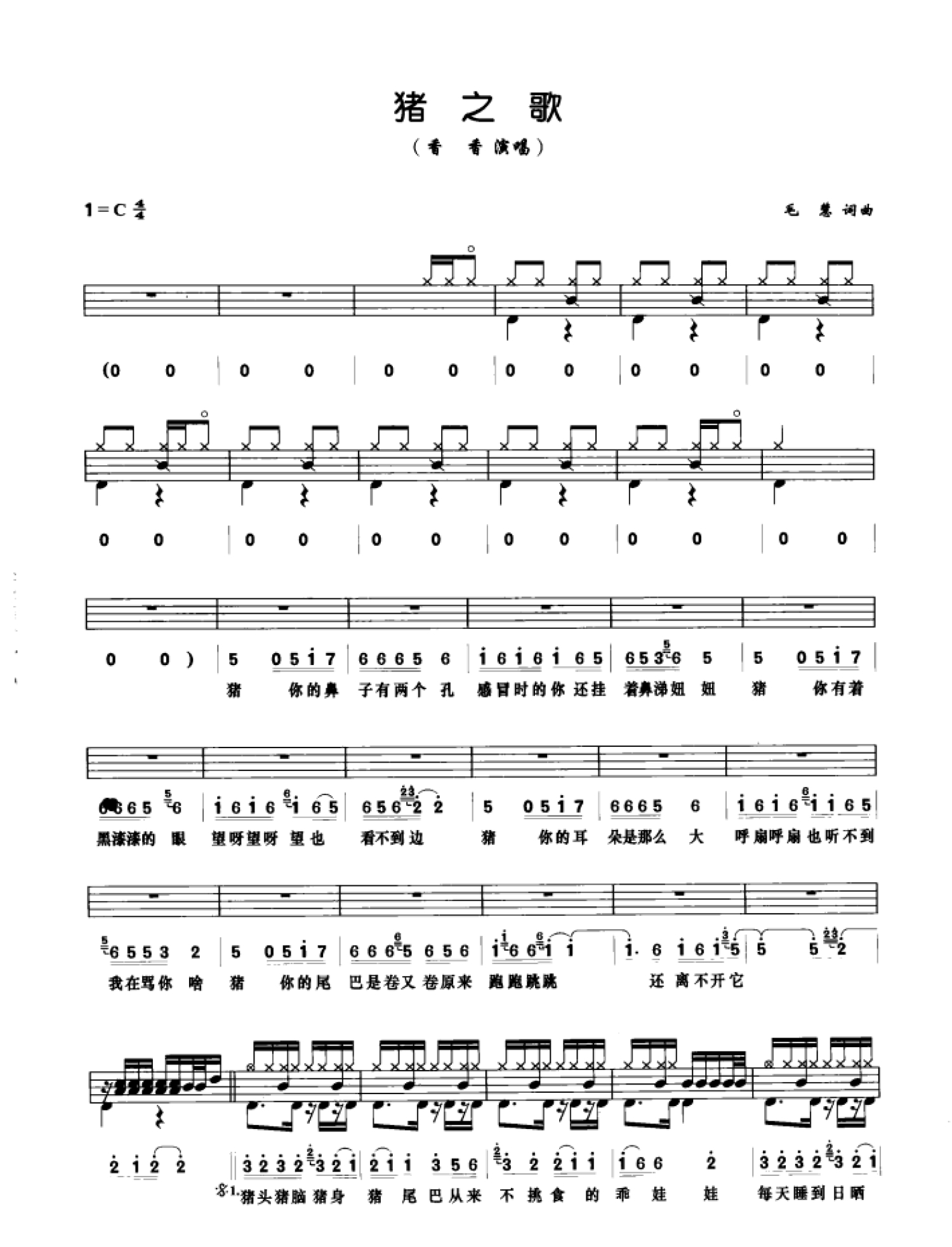 曲谱介绍: 猪之歌(架子鼓谱)-香香