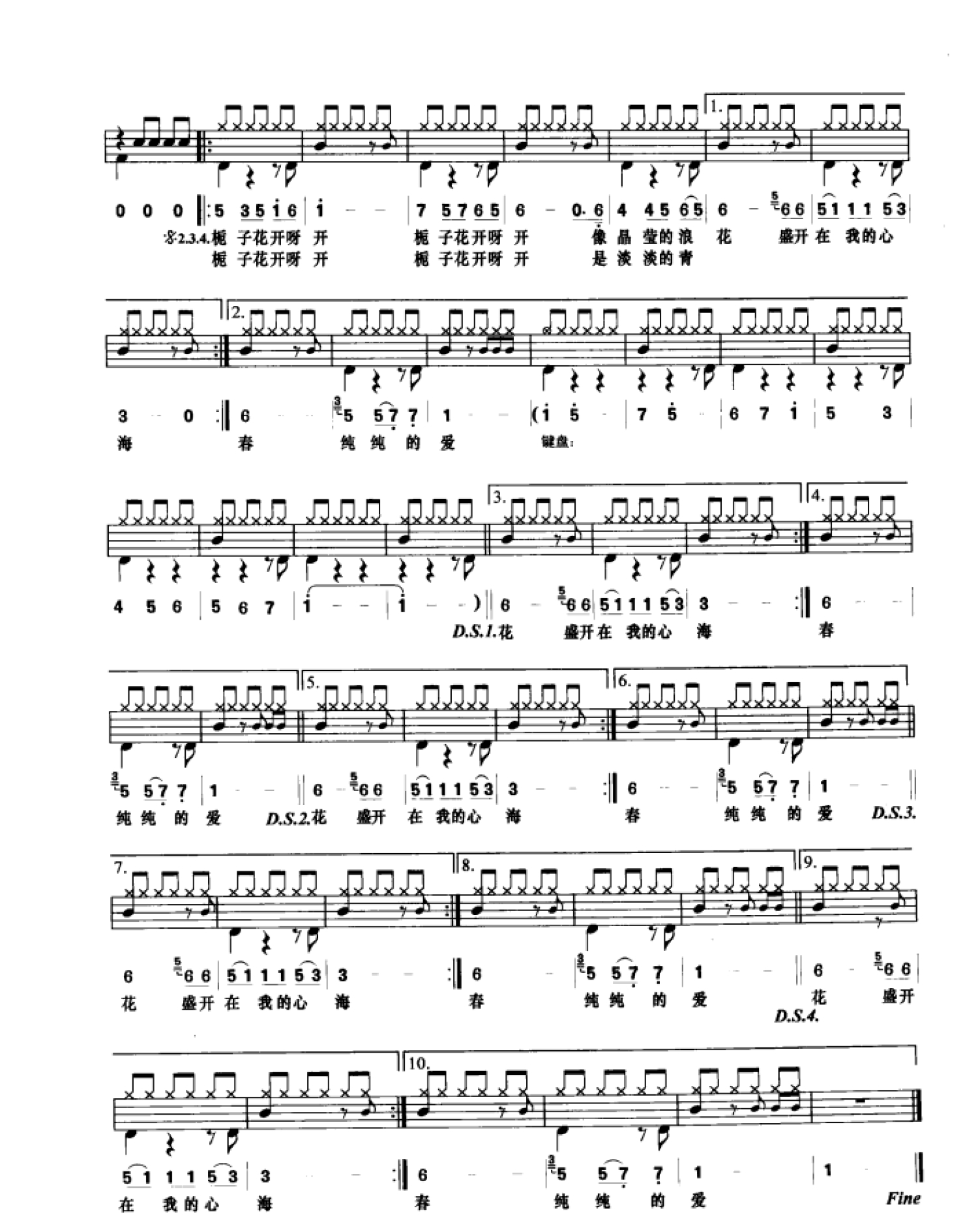当前位置:琴谱网>架子鼓谱>栀子花开