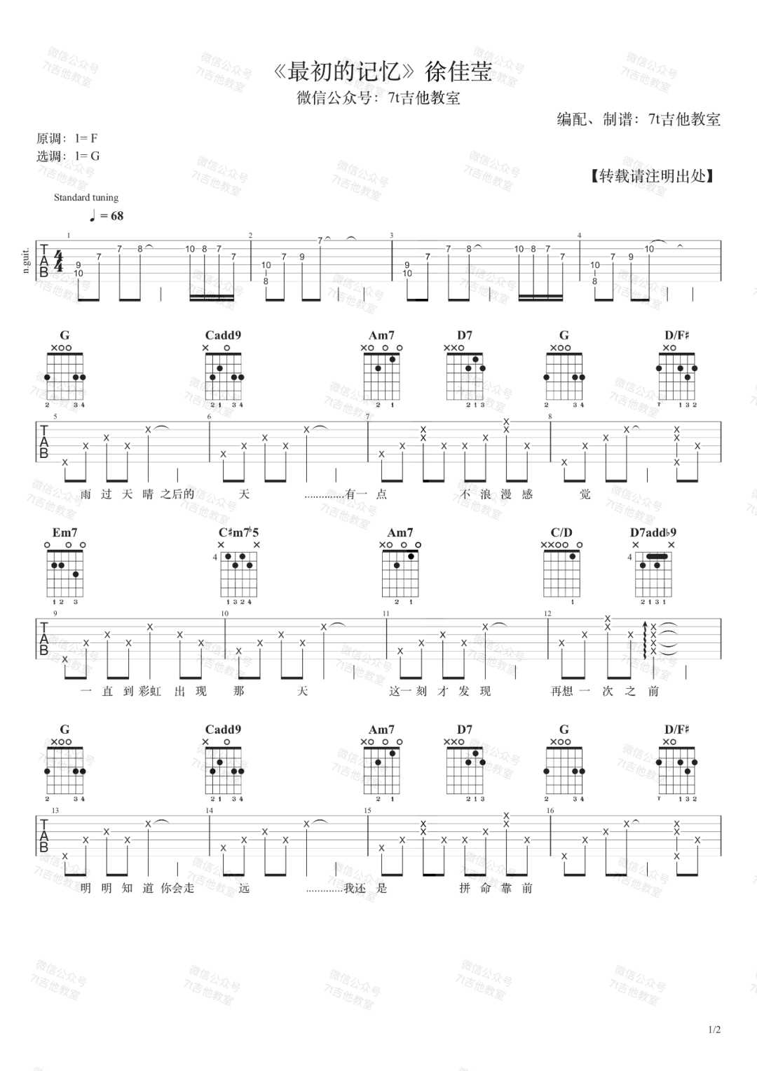 最初的记忆吉他谱 - 徐佳莹 - G调吉他弹唱谱 - 原版