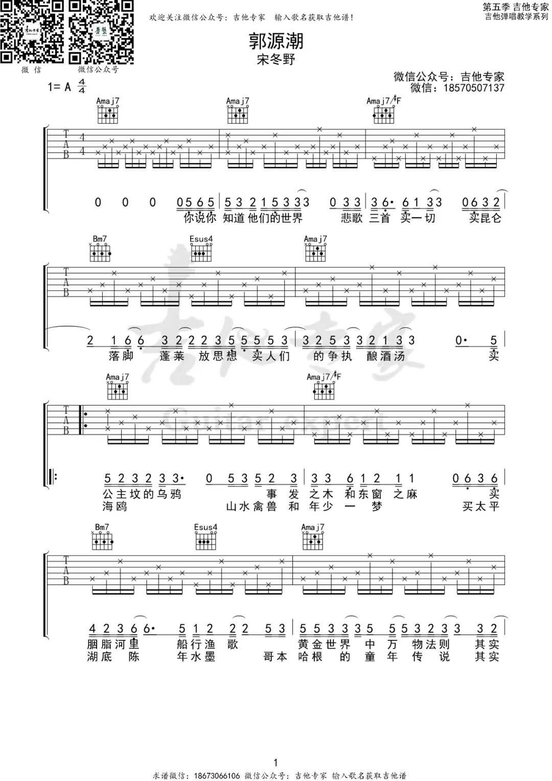 郭源潮吉他谱 - 宋冬野 - A调吉他弹唱谱 - 原版