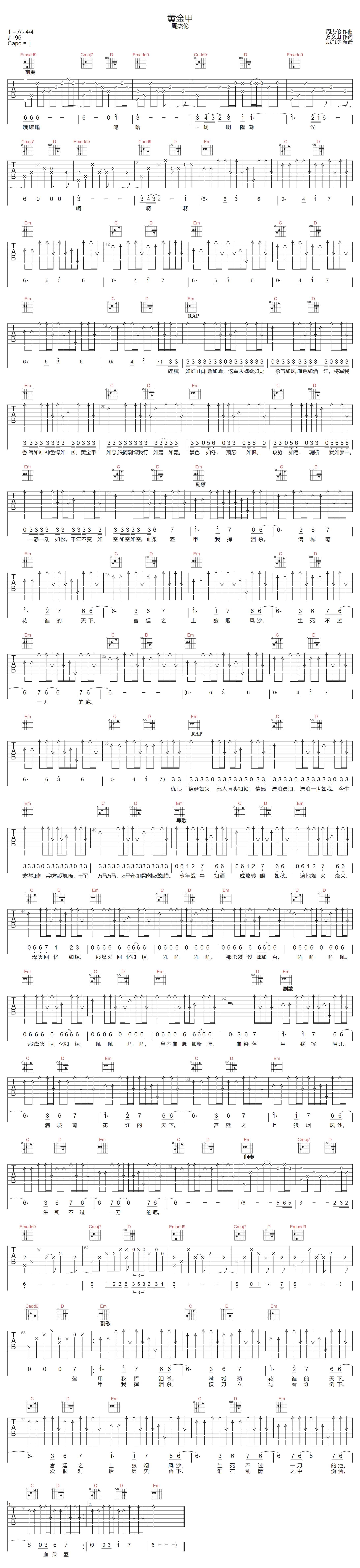 当前位置:琴谱网>吉他弹唱>黄金甲