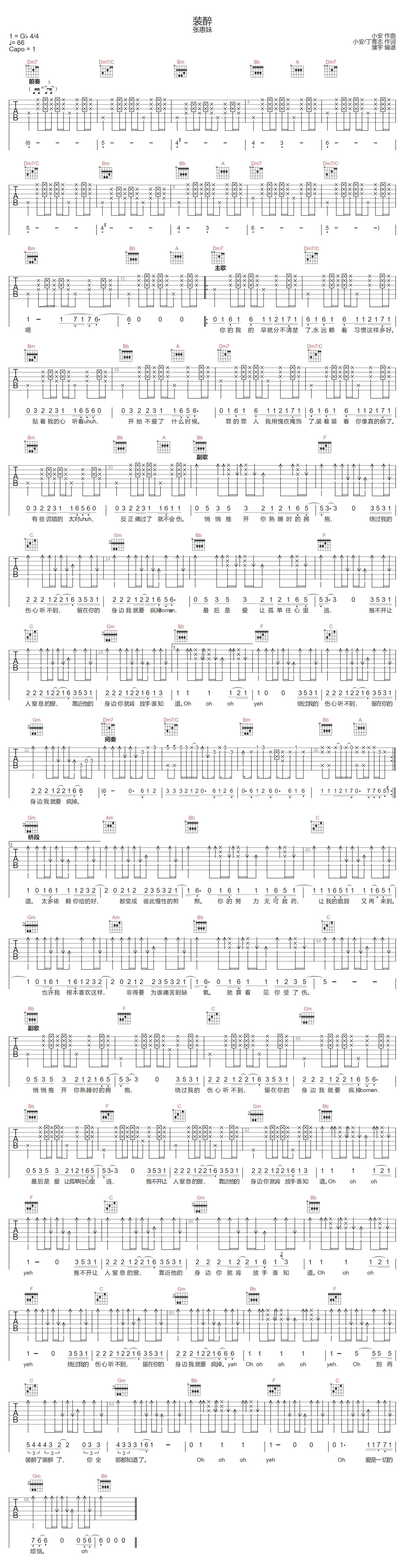 当前位置:琴谱网>吉他弹唱>装醉