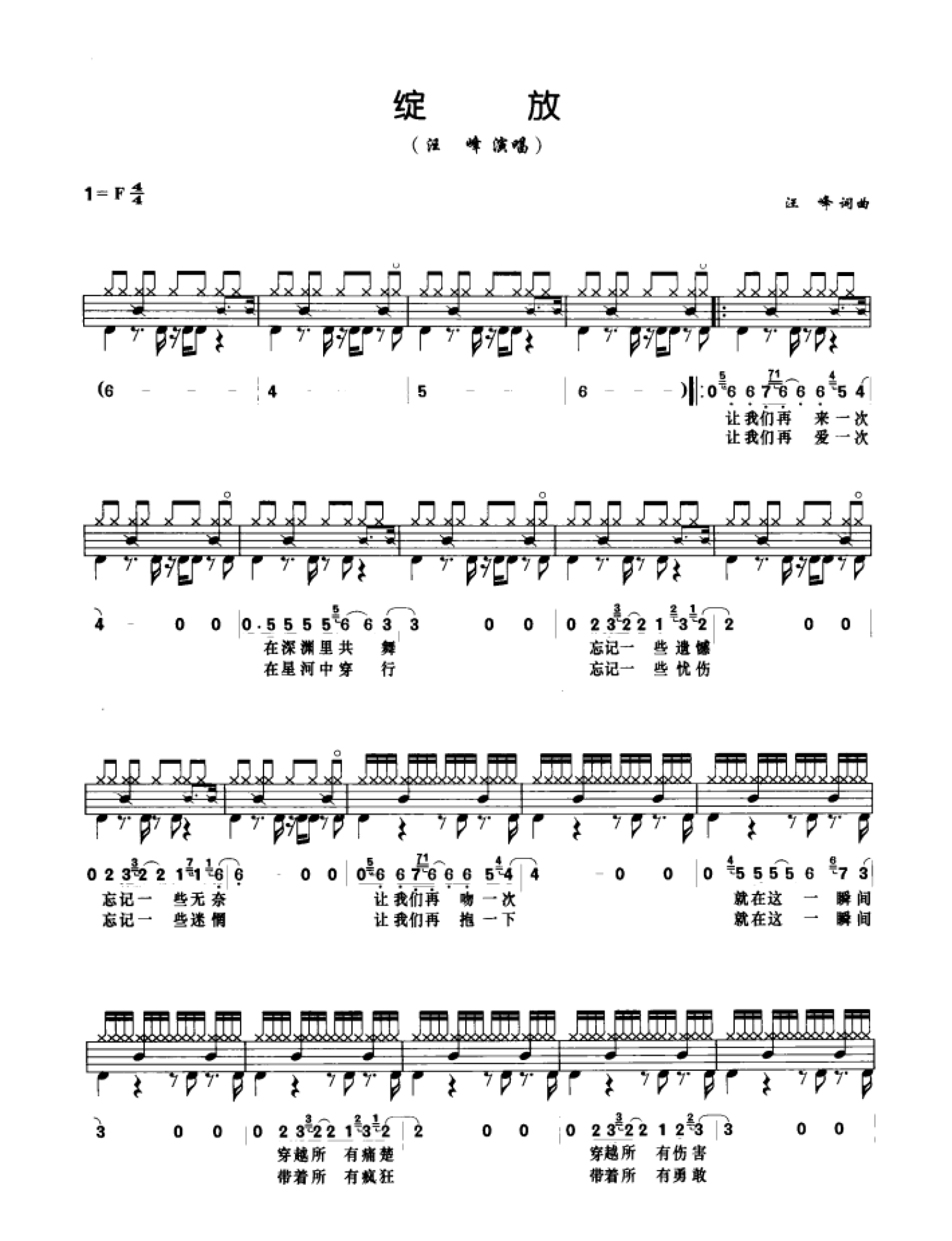 曲谱介绍: 绽放(架子鼓谱)-汪峰