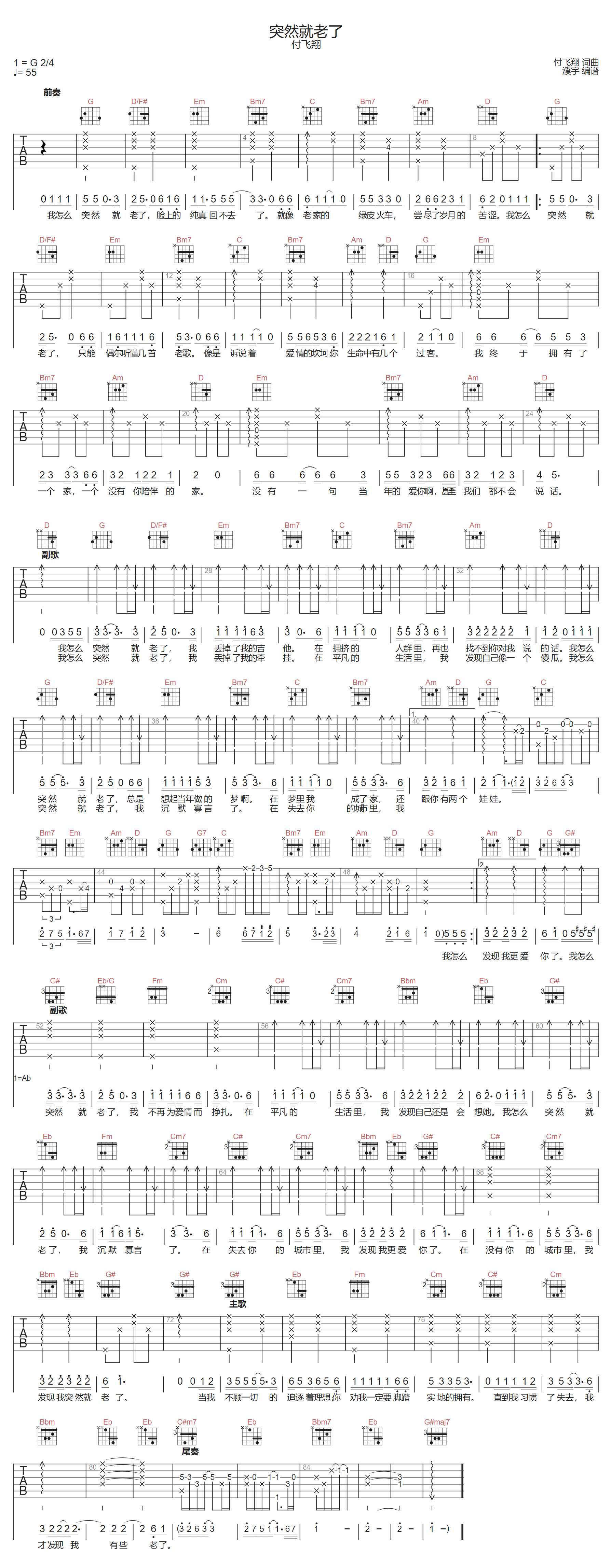 突然就老了吉他谱 - 付飞翔 - G调吉他弹唱谱 - 原版