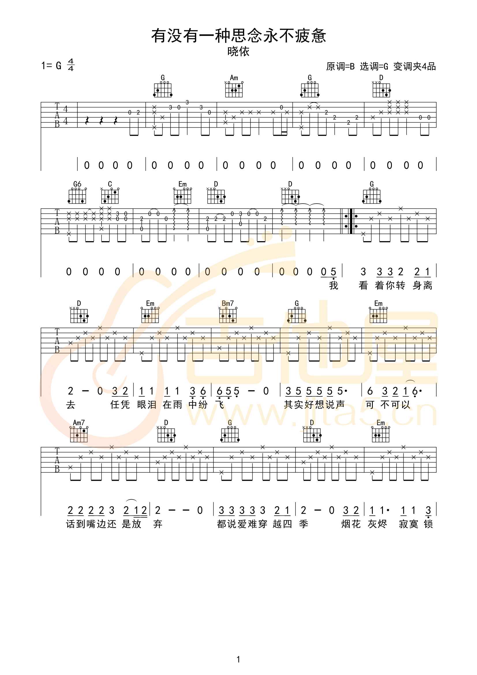 有没有一种思念永不疲惫吉他谱 - 晓依 - G调吉他弹唱谱 - 原版