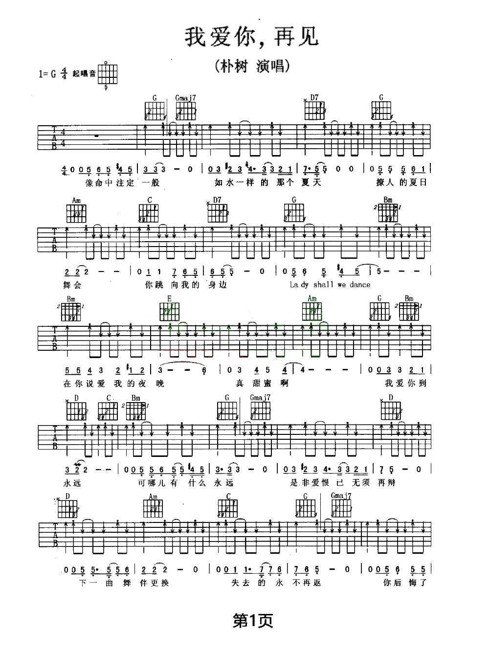 我爱你再见吉他谱 - 朴树 - G调吉他弹唱谱
