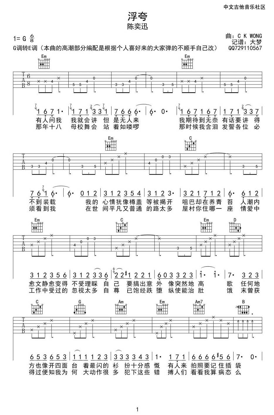 浮夸吉他谱 - 陈奕迅 - G调吉他弹唱谱