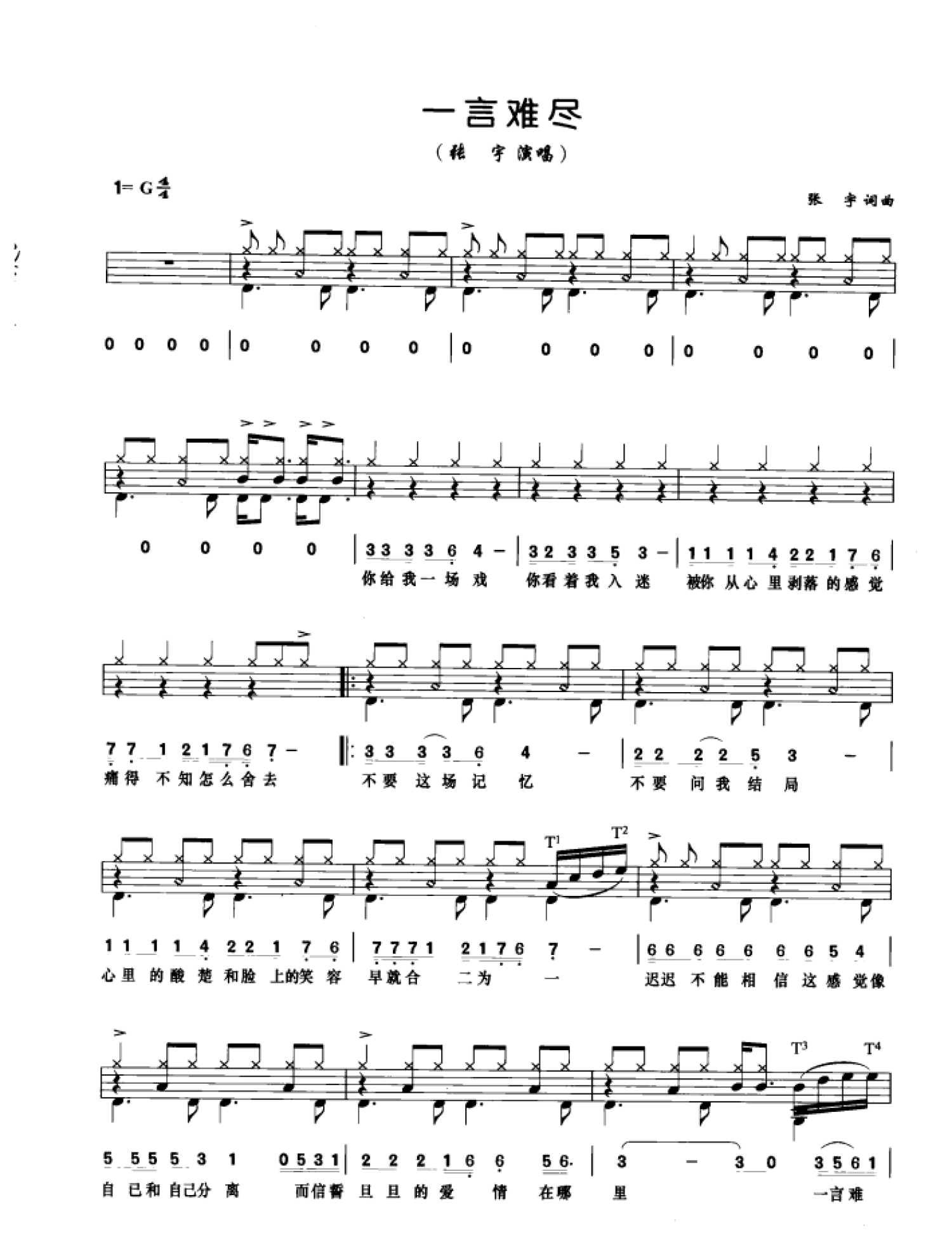 曲谱介绍: 一言难尽(架子鼓谱)-张宇