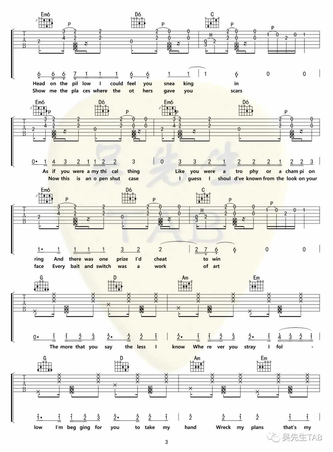 曲谱介绍: Taylor-Swift演唱的一首歌曲,4/4拍的节奏,这首歌曲的原调为G调,这里曲谱采用了G调指法进行编配,演唱时可不夹变调夹,曲谱由琴谱网更新上传,来源于@吴先生TAB编配出品。这首歌是《folklore》姊妹篇《evermore》主打单曲,Taylor Swift再次亲自指导MV,延续上一主打曲《cardigan》风格,描绘犹如梦境般的诗意爱情故事。