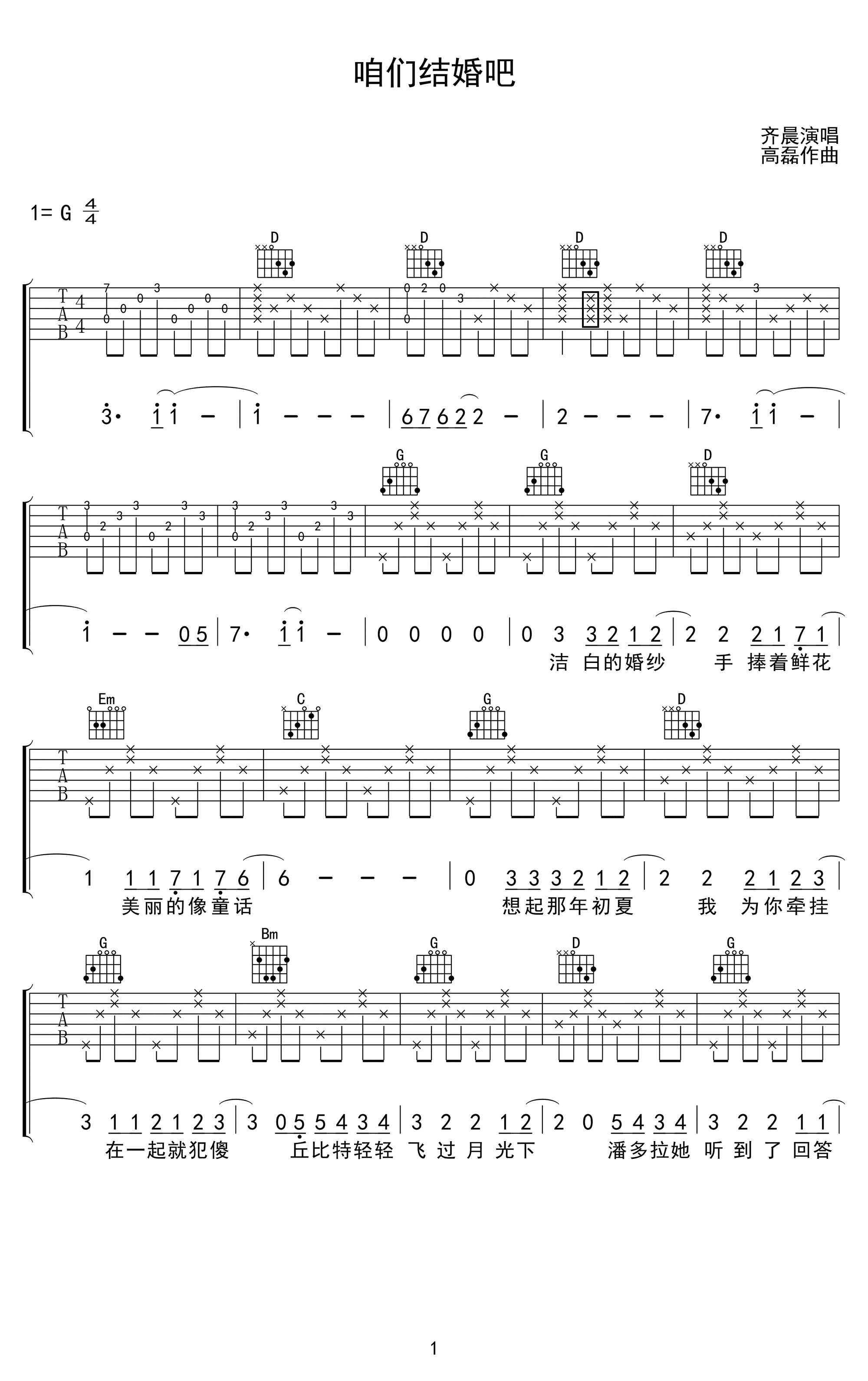 咱们结婚吧吉他谱 - 齐晨 - G调吉他弹唱谱 - 原版