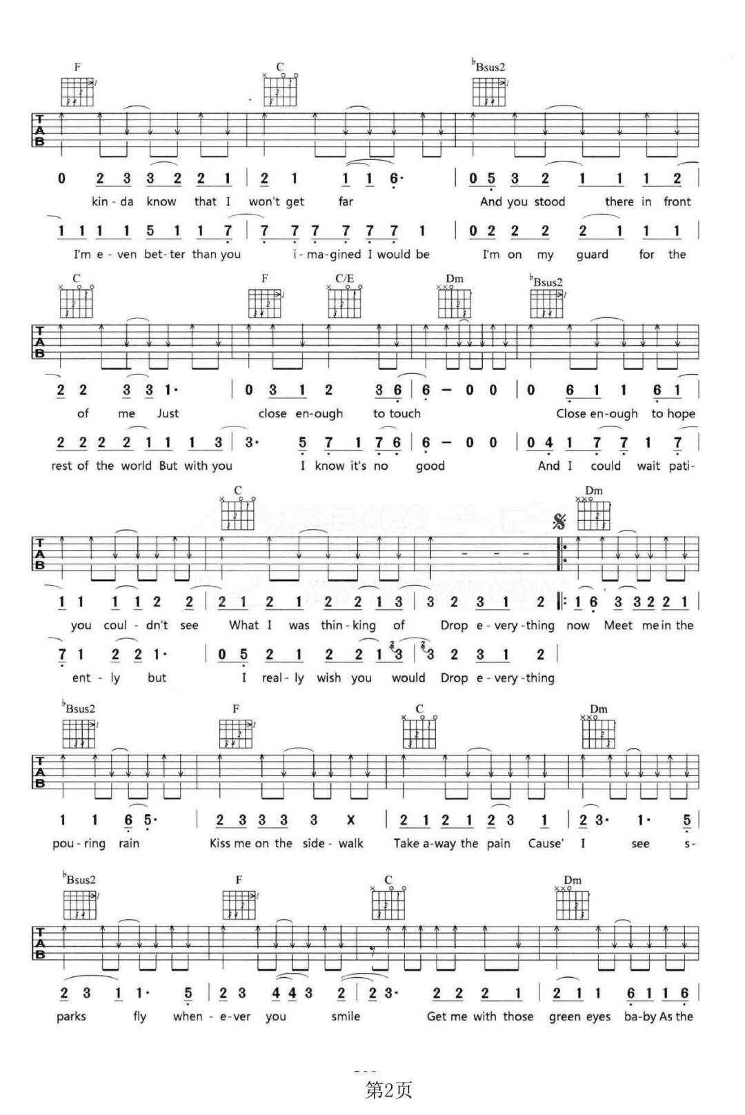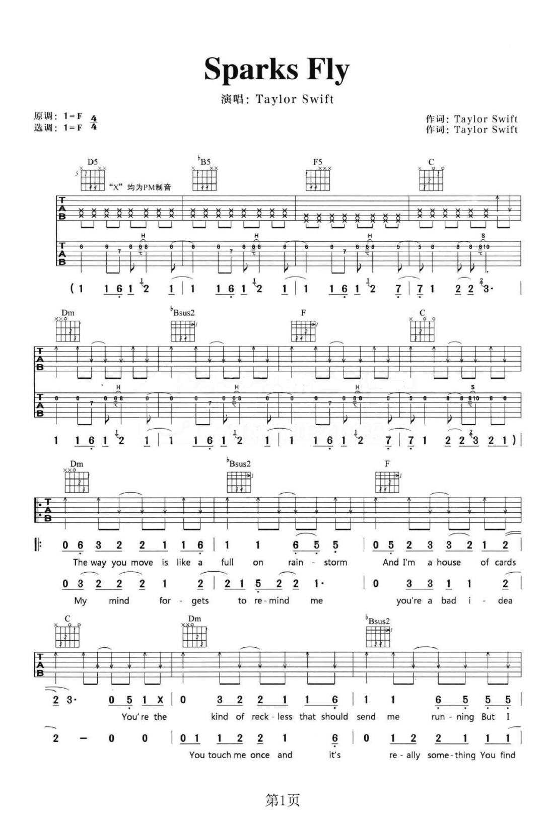 Sparks Fly吉他谱 - Sparks - F调吉他弹唱谱