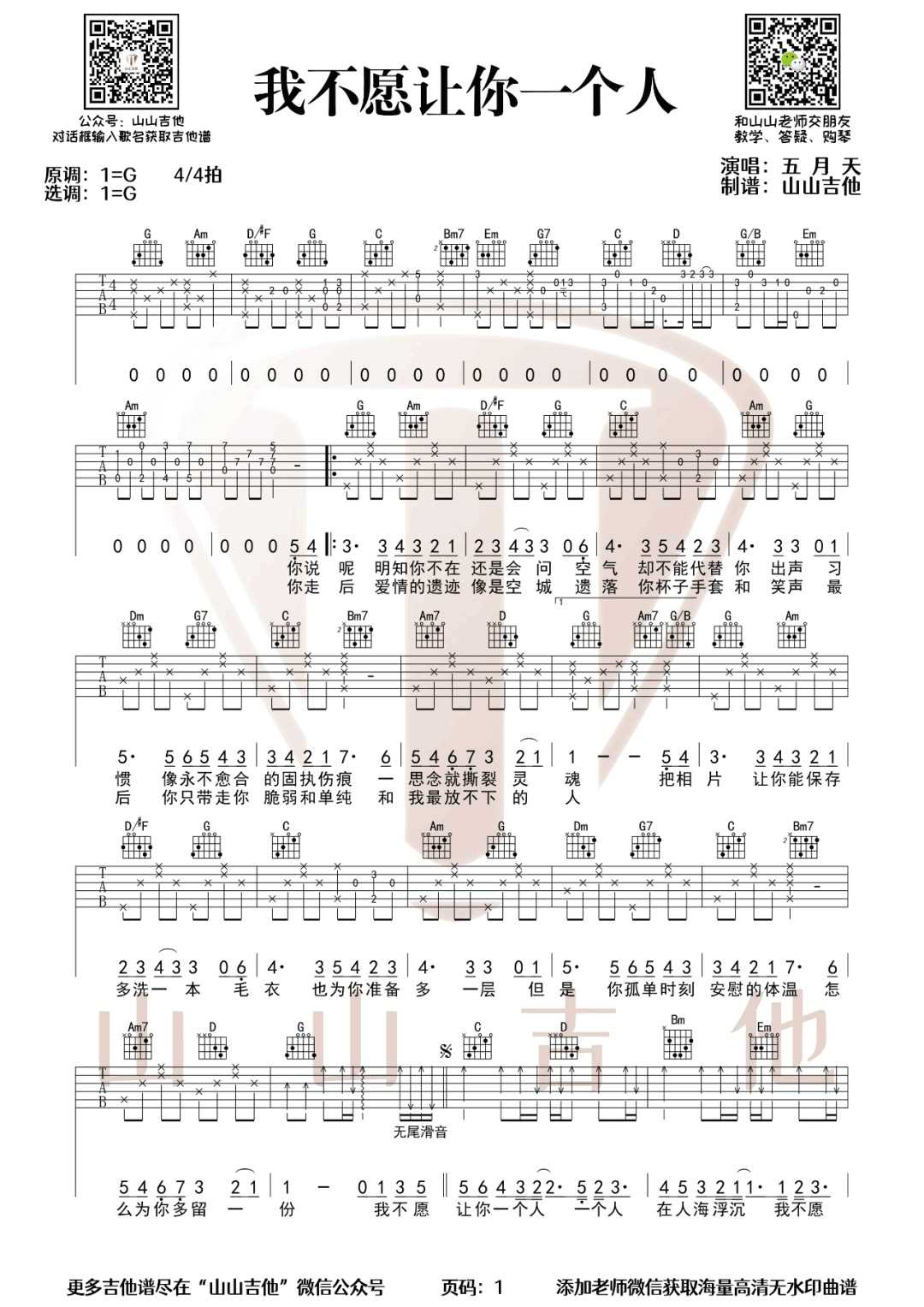 我不愿让你一个人吉他谱 - 五月天 - G调吉他弹唱谱
