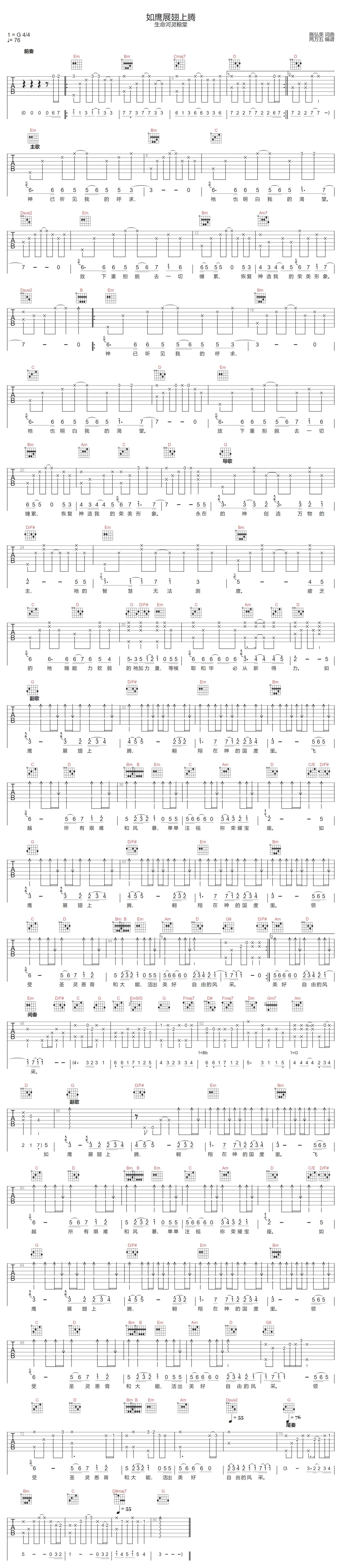 如鹰展翅上腾吉他谱 - 生命河灵粮堂 - G调吉他弹唱谱 - 原版