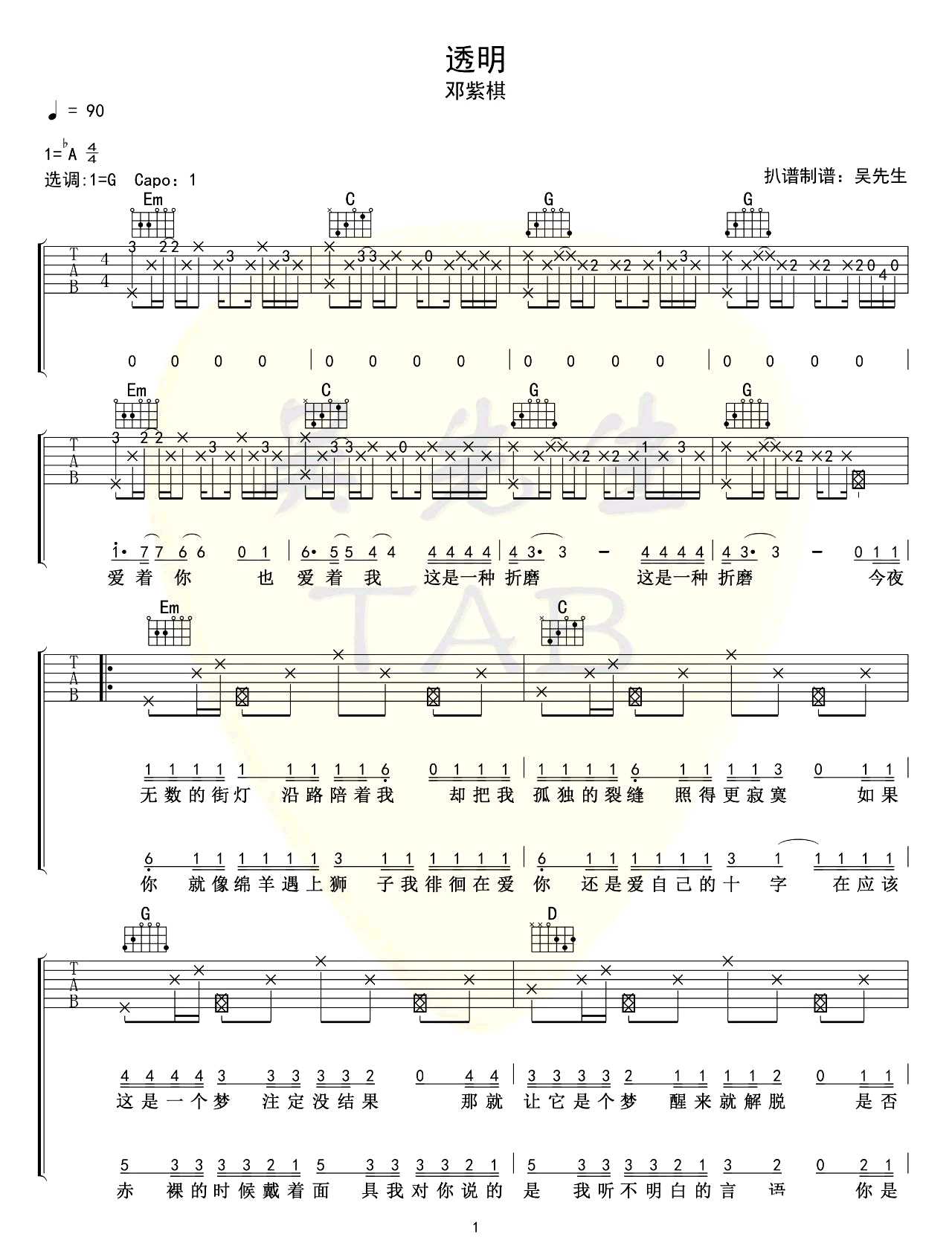 透明吉他谱 - 邓紫棋 - G调吉他弹唱谱 - 原版