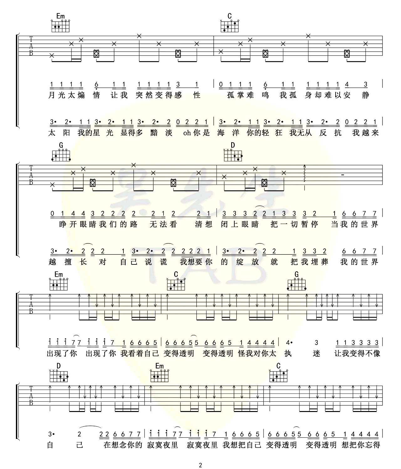 曲谱介绍: 邓紫棋演唱的一首歌曲,4/4拍的节奏,这首歌曲的原调为降A调,这里曲谱采用了G调指法进行编配,演唱时夹变调夹1品可回到原调,也可根据个人实际嗓音情况选择。曲谱由琴谱网更新上传,来源于@吴先生TAB编配出品。这首歌强而有力的鼓点贯穿全曲,将歌曲情绪随主副歌层次逐渐拉抬,是融合说唱与都会节奏蓝调音乐元素的新型态抒情歌。