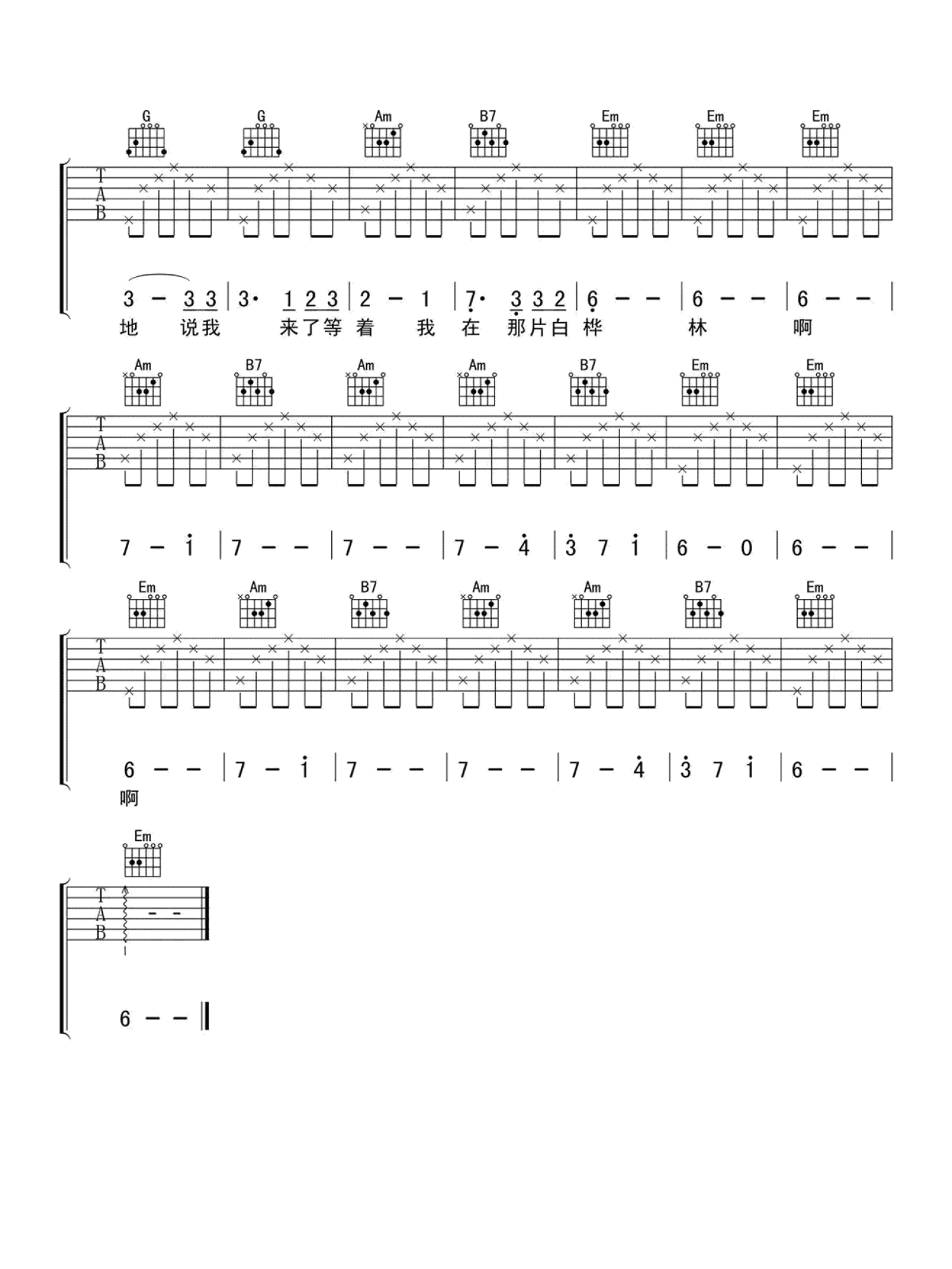 当前位置:琴谱网>吉他弹唱>白桦林