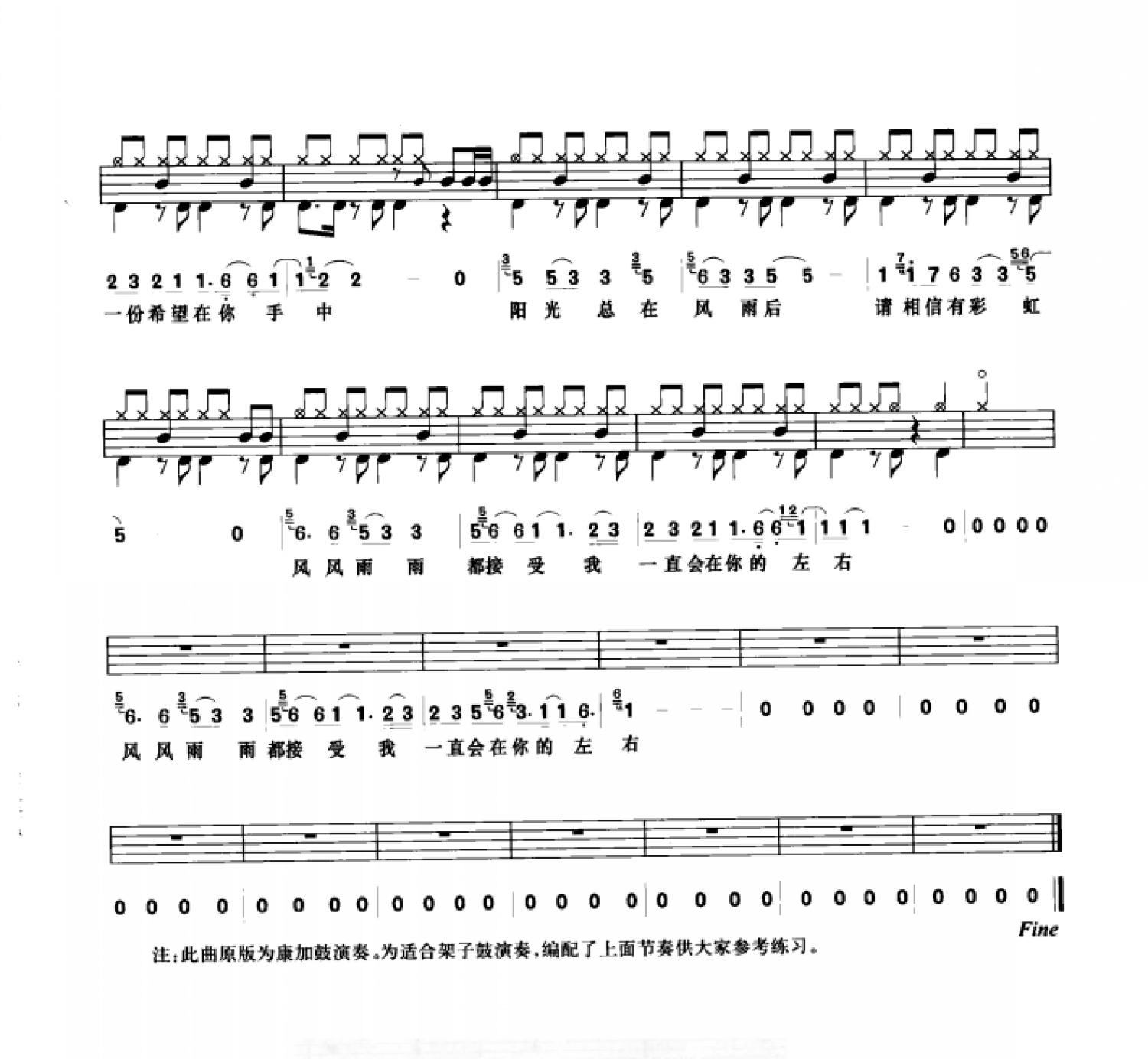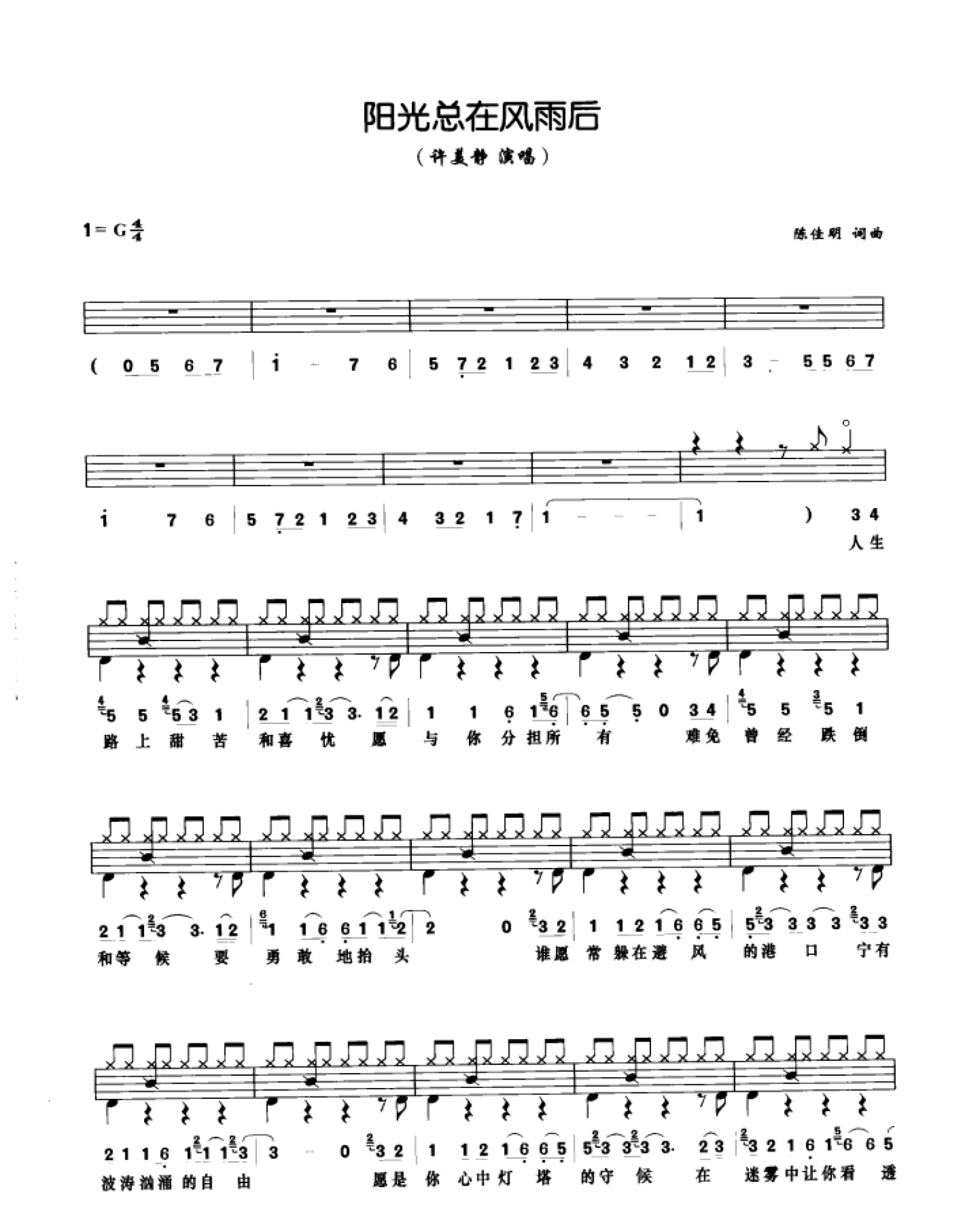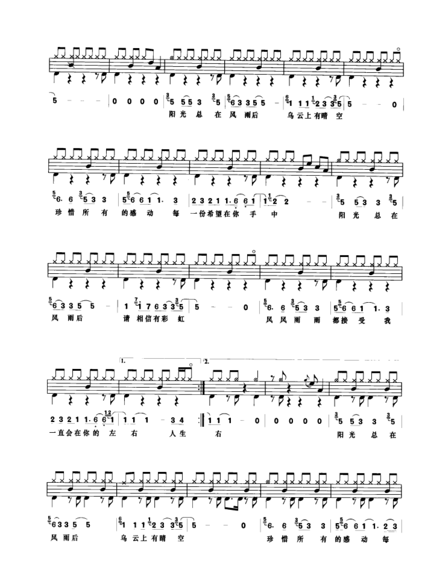 曲谱介绍: 阳光总在风雨后(架子鼓谱)-许美静