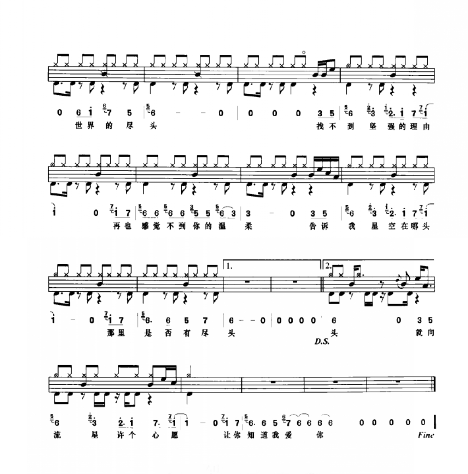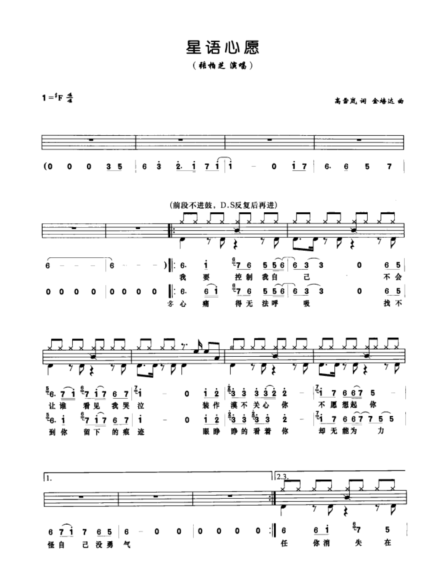 曲谱介绍: 星语星愿(架子鼓谱)-张柏芝
