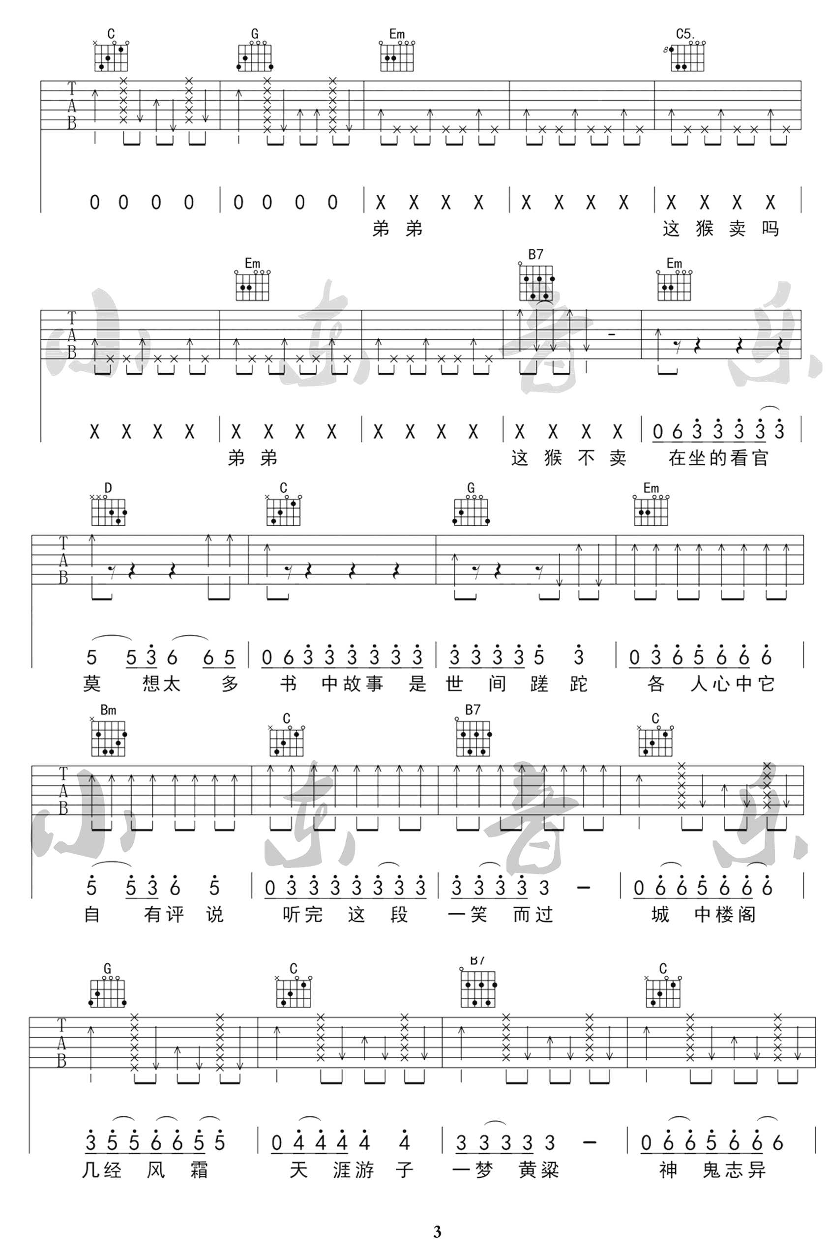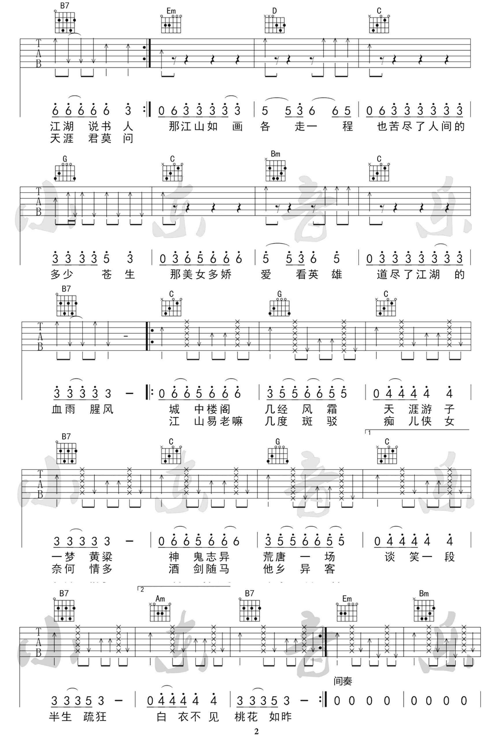曲谱介绍: 暗杠演唱的一首歌曲,4/4拍的节奏,这首歌曲的原调为G调,这里曲谱采用了G调指法进行编配,演唱时可不夹变调夹,曲谱由琴谱网更新上传,来源于@小东音乐编配出品。说书人是一个极为矛盾的角色,一把折扇,一块醒木,数声吆喝,便口若悬河,嬉笑怒骂,说尽侠骨柔肠,说尽痴儿怨女,说尽萍水相逢,说尽世间蹉跎,只是说着说着,却已然不知,自己究竟是说书人,还是书中人。