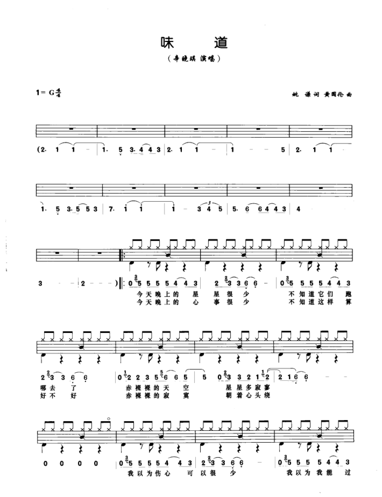 曲谱介绍: 味道(架子鼓谱)-辛晓琪