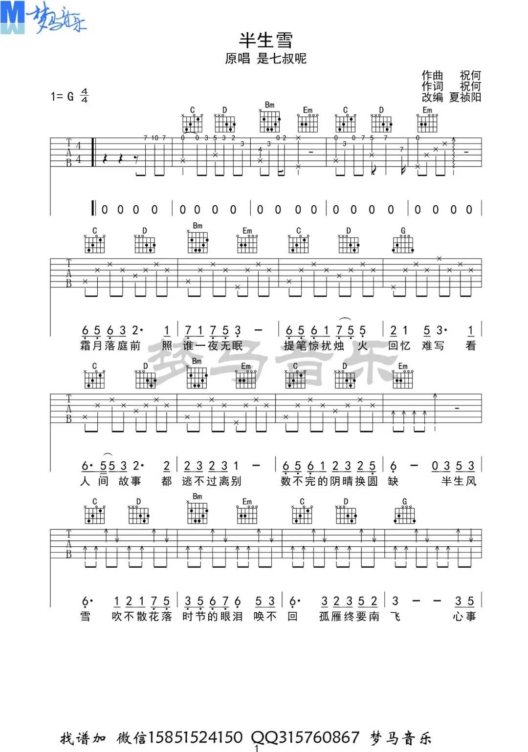 半生雪吉他谱 - 是七叔呢 - G调吉他弹唱谱